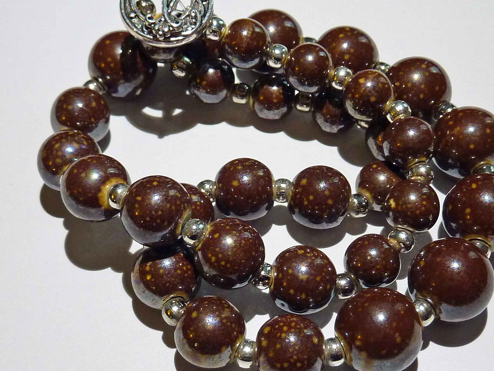 Description : Collier de forme classique en porcelaine intercalés de petites perles argent