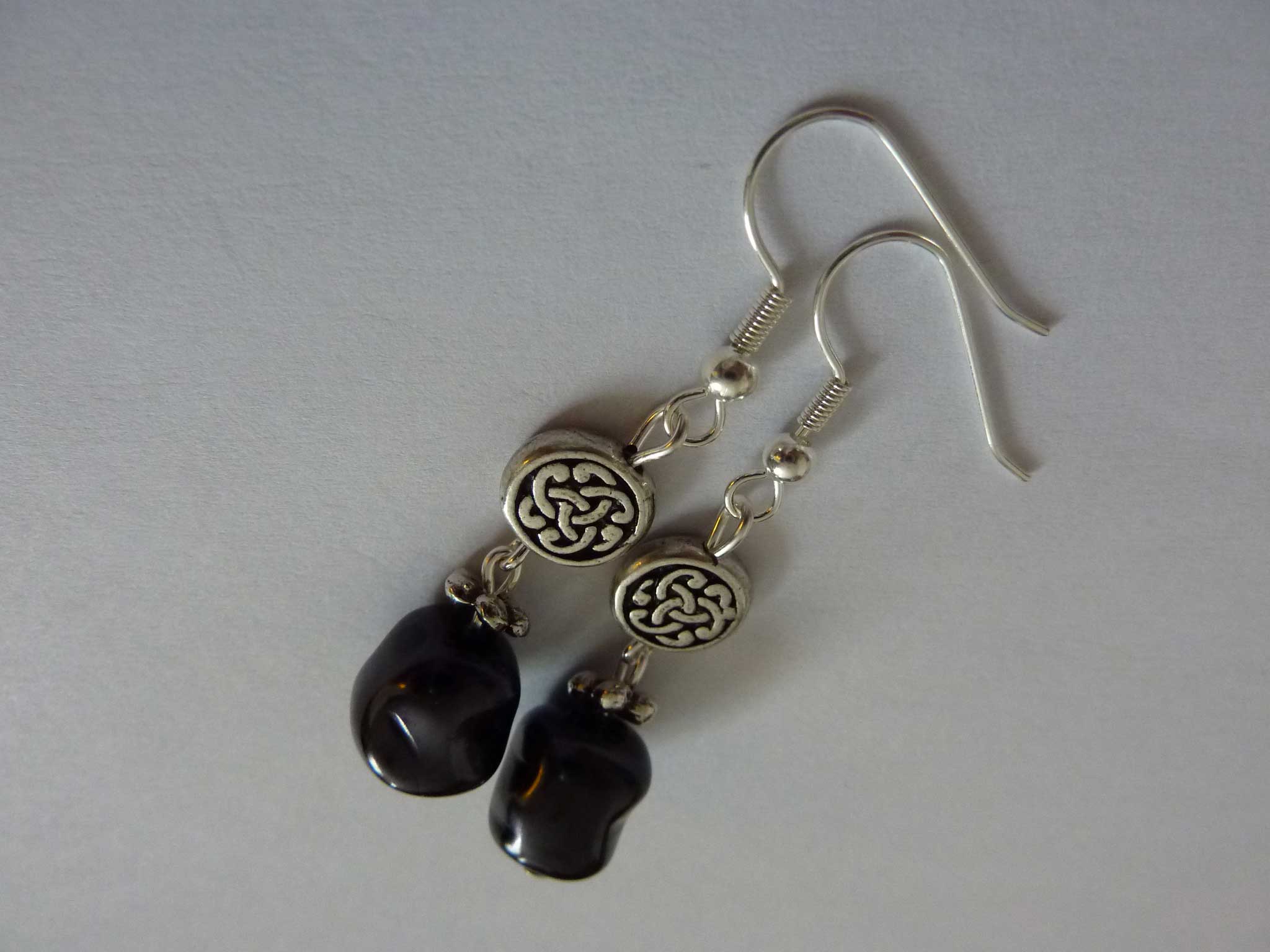 Description : Perle en verre nacrée style baroque accompagnée d'une perle plate argent aux motifs celtiques