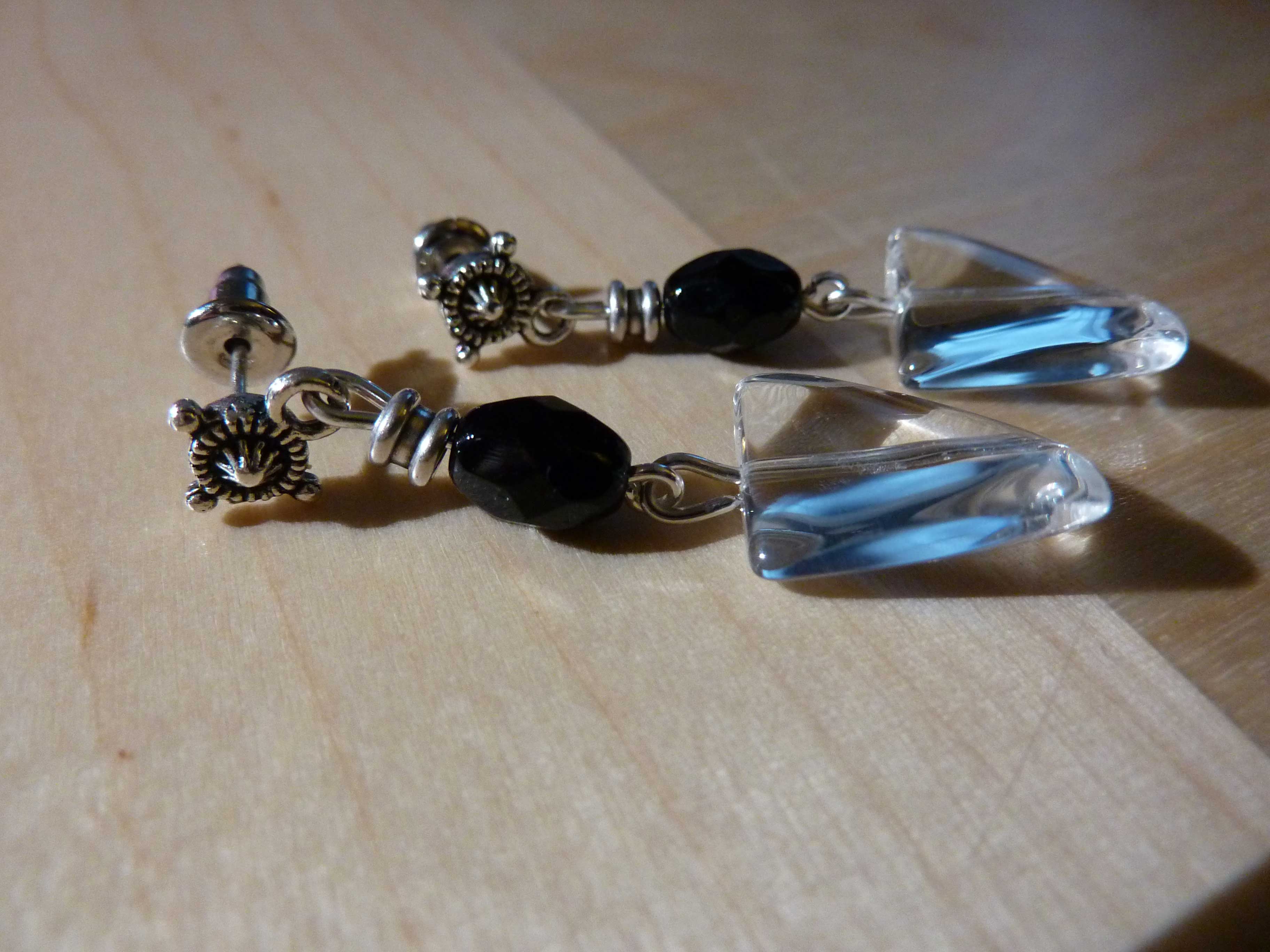 Description : Jolie perle rectangle en cristal agrémentée d'un grain de riz swarowski noir sur une monture argent