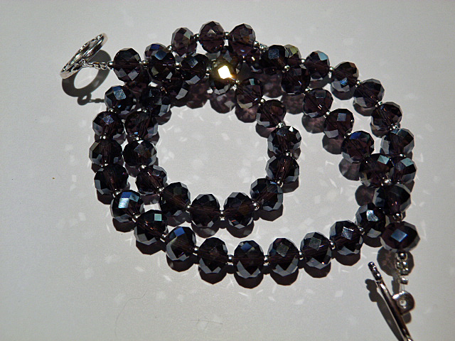 Description : Petit collier tout en perles à facettes en cristal de bohème intercalées de toutes perles argent