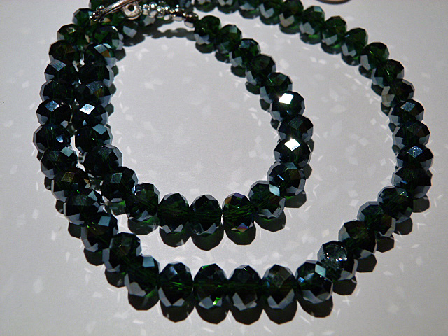 Description : Collier tout en perles à facettes en cristal de bohème au vert profond et chatoyant