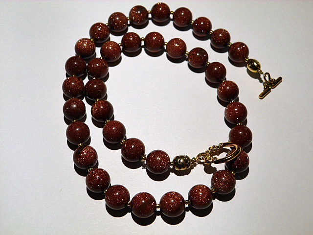 Description : Perles rondes en goldstone orange/or intercalées de toutes petites perles dorées