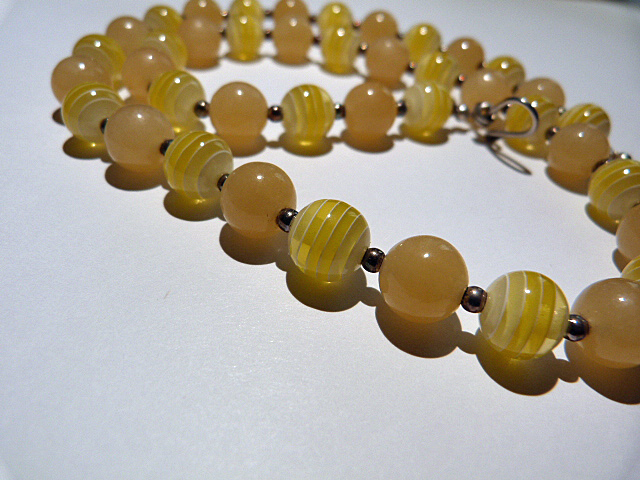 Description : Perles en agate jaune et en verre fantaisie jaune et blanc