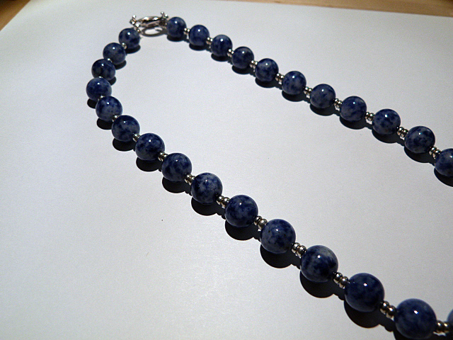 Description : Joli collier de perles blue spot bleu/gris intercalées de petites perles argent