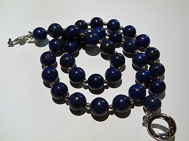 Description : Perles en lapis lazuli intercalées de petites perles argent