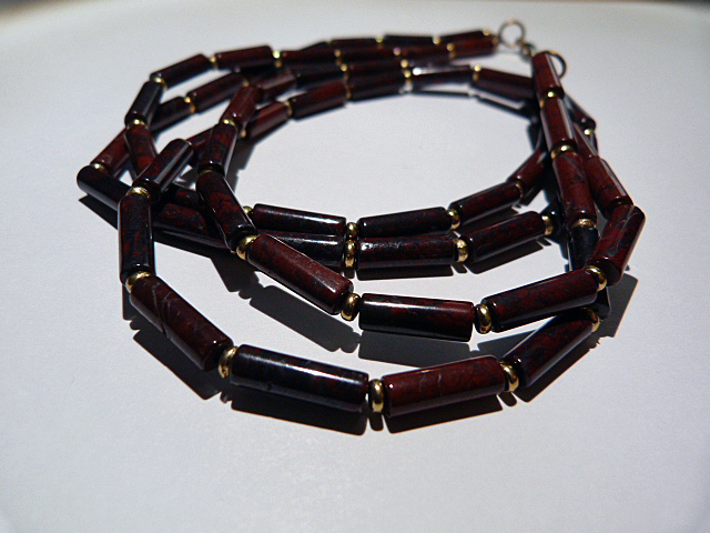 Description : Tubes en jaspe brillant intercalées de perles argent