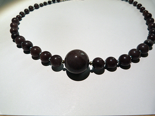 Description : Collier classique en gemmes taupes intercalées de petites perles argent