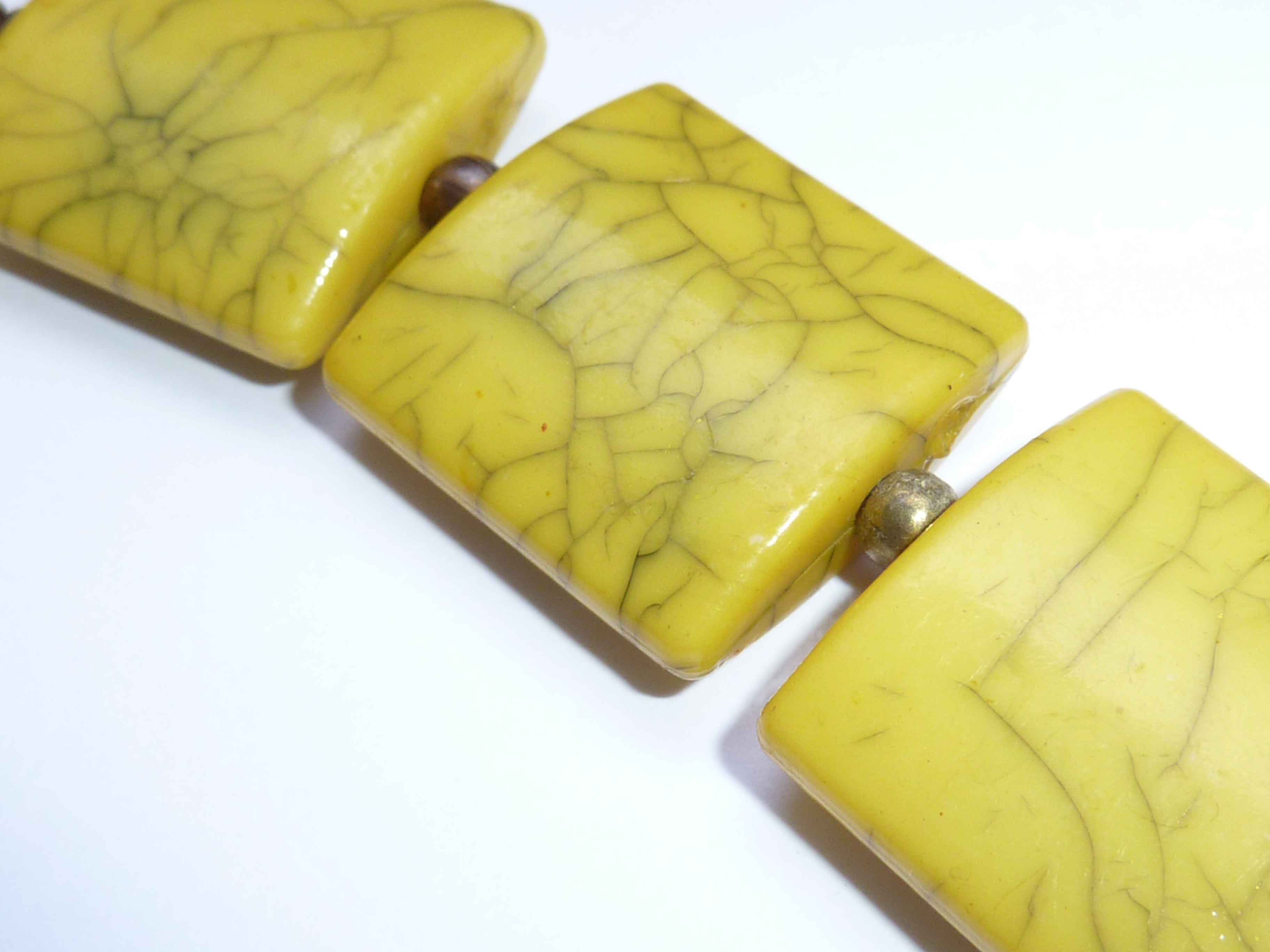Description : Perles carrées en résine intercalées de perles en métal bronze