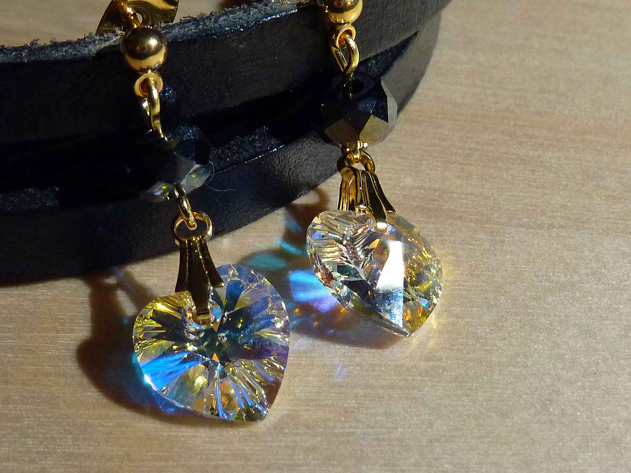 Description : Petite boucle agrémentée d'un petit tout brillant et d'une perle swarowski noire sur une monture dorée