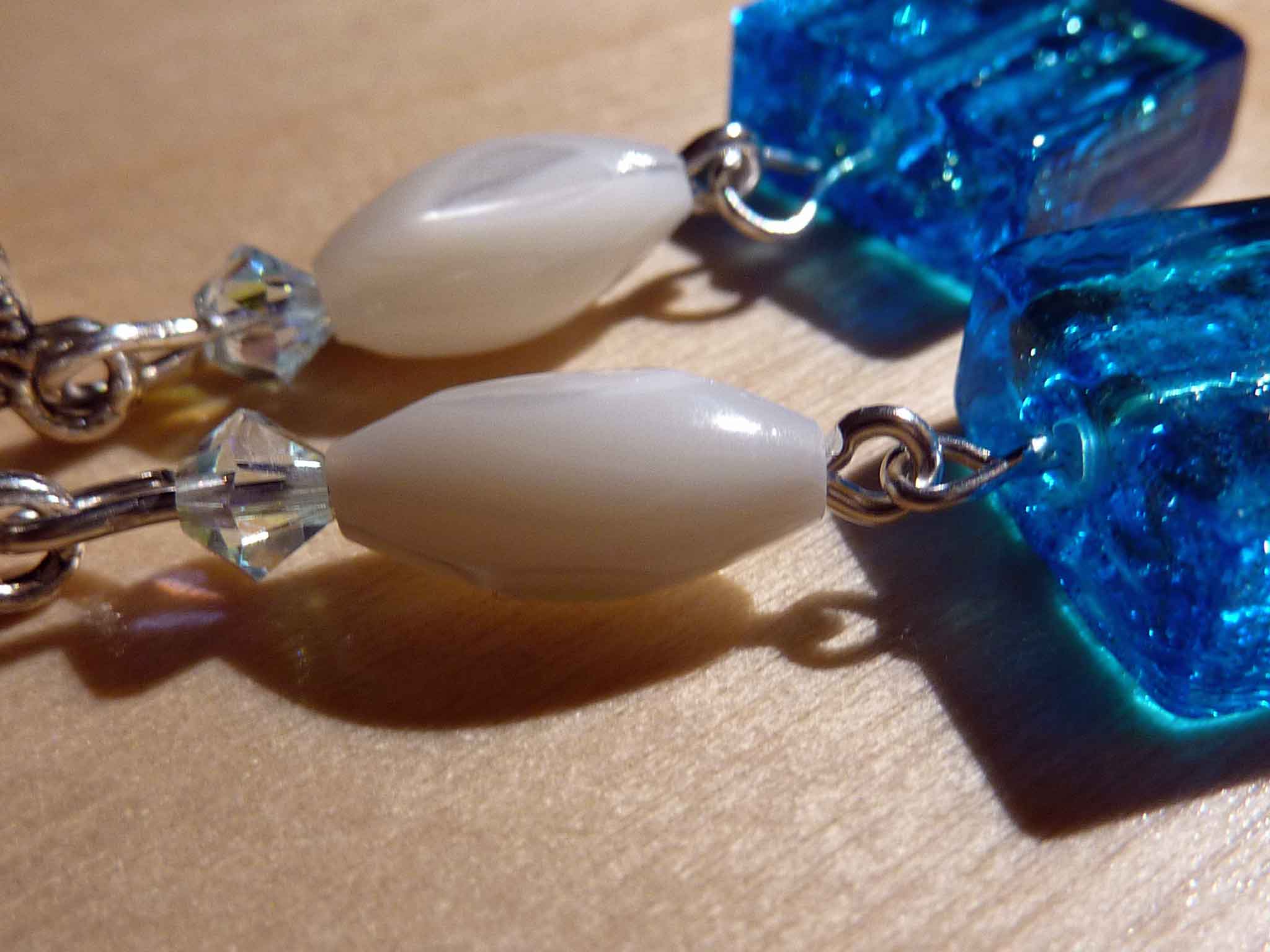 Description : Joli palet style murano tout bleu avec 2 swarowski et une perle de nacre sur une monture argent
