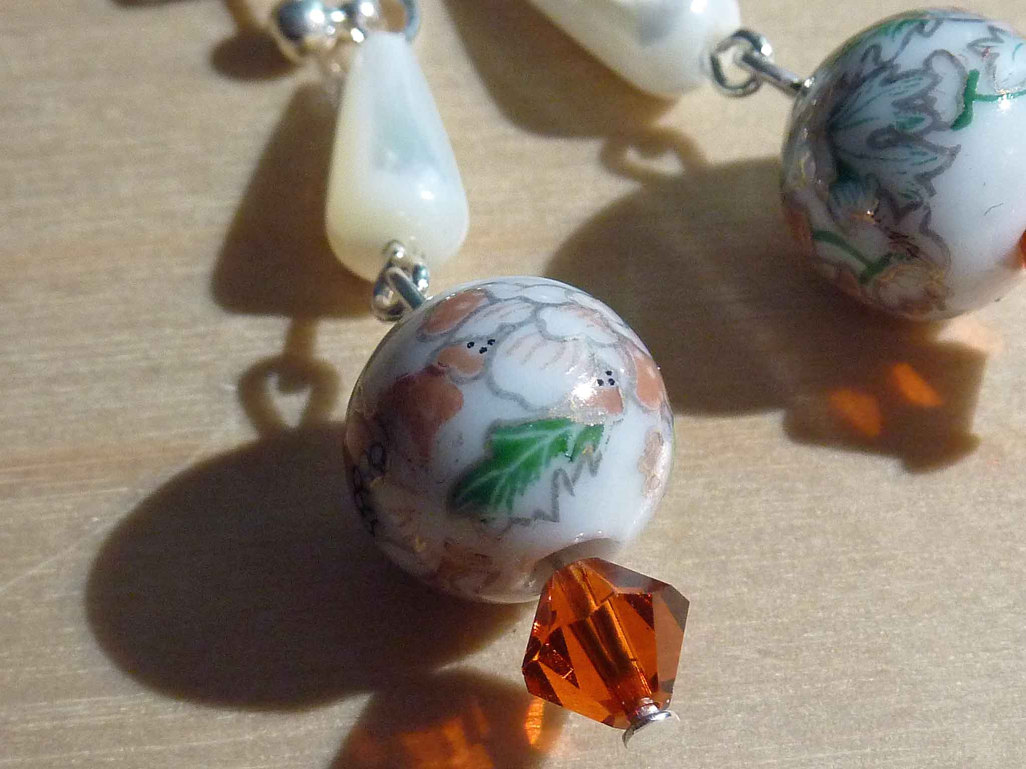 Description : Jolie boucle en nacre, perle en porcelaine aux motifs chinois sur une monture argent