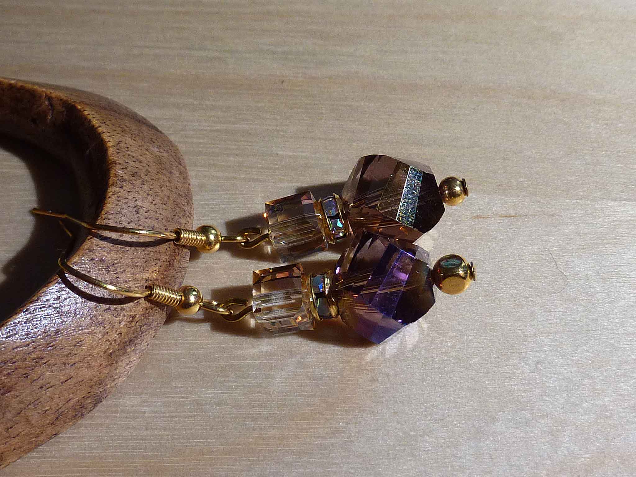 Description : Belle perle en cristal swarowski aux couleurs mordorées avec un petit cube sur une monture dorée