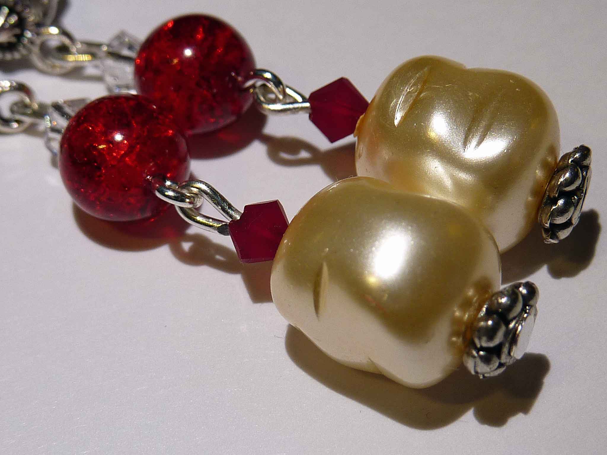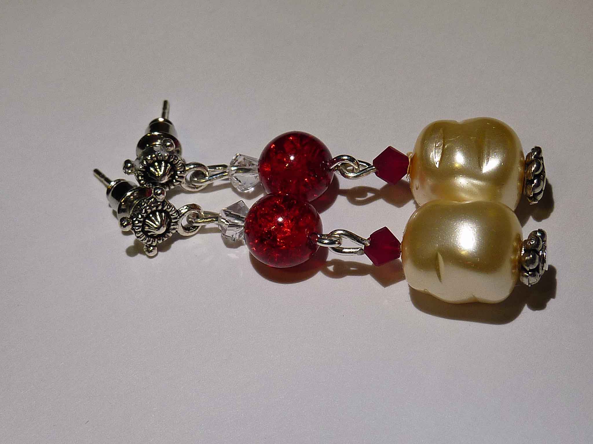Description : Perle en verre nacrée et petite perle en verre craquelée sur monture argentée.