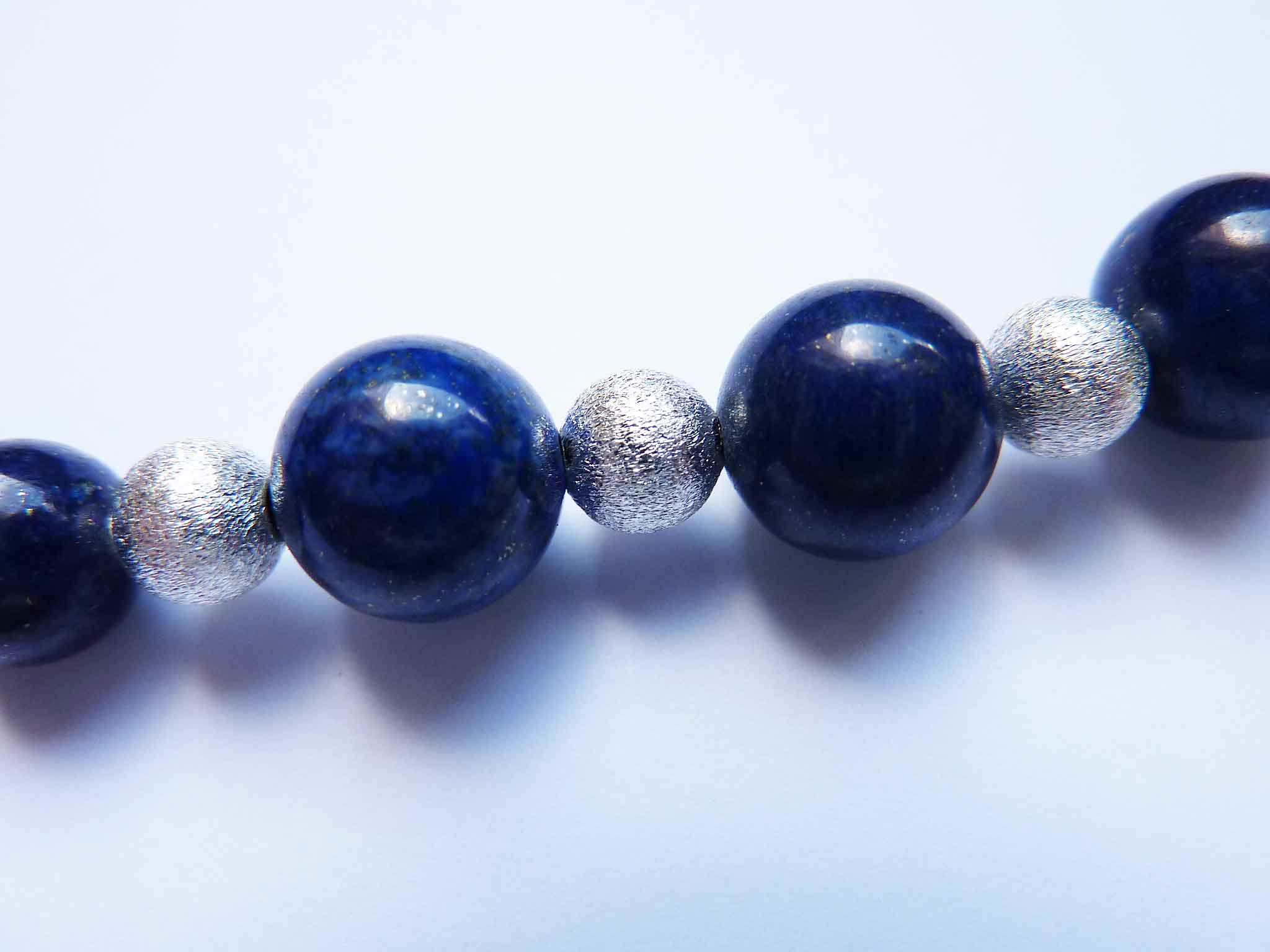 Description : Joli collier en lapis-lazuli avec des jolies perles argentées