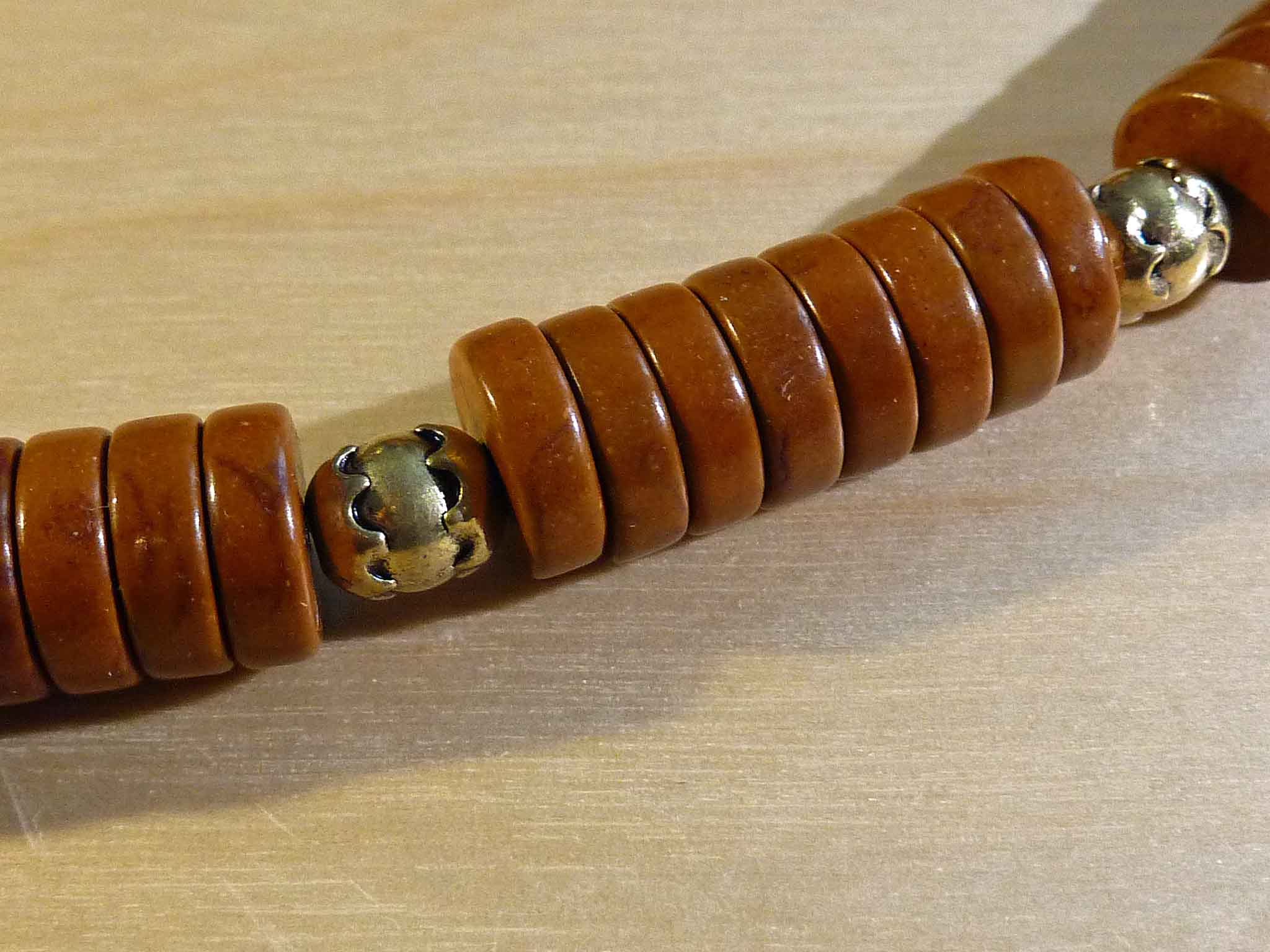 Description : Perles plates intercalées de perles dorées ouvragées