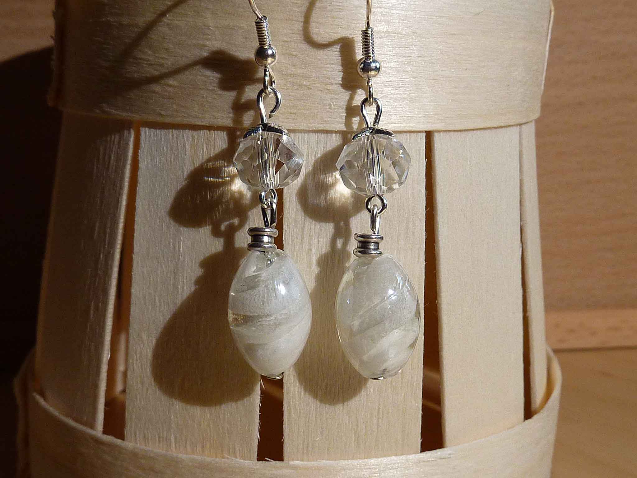 Description : Toute simple cette boucle toute blanche et en transparence sur monture argent