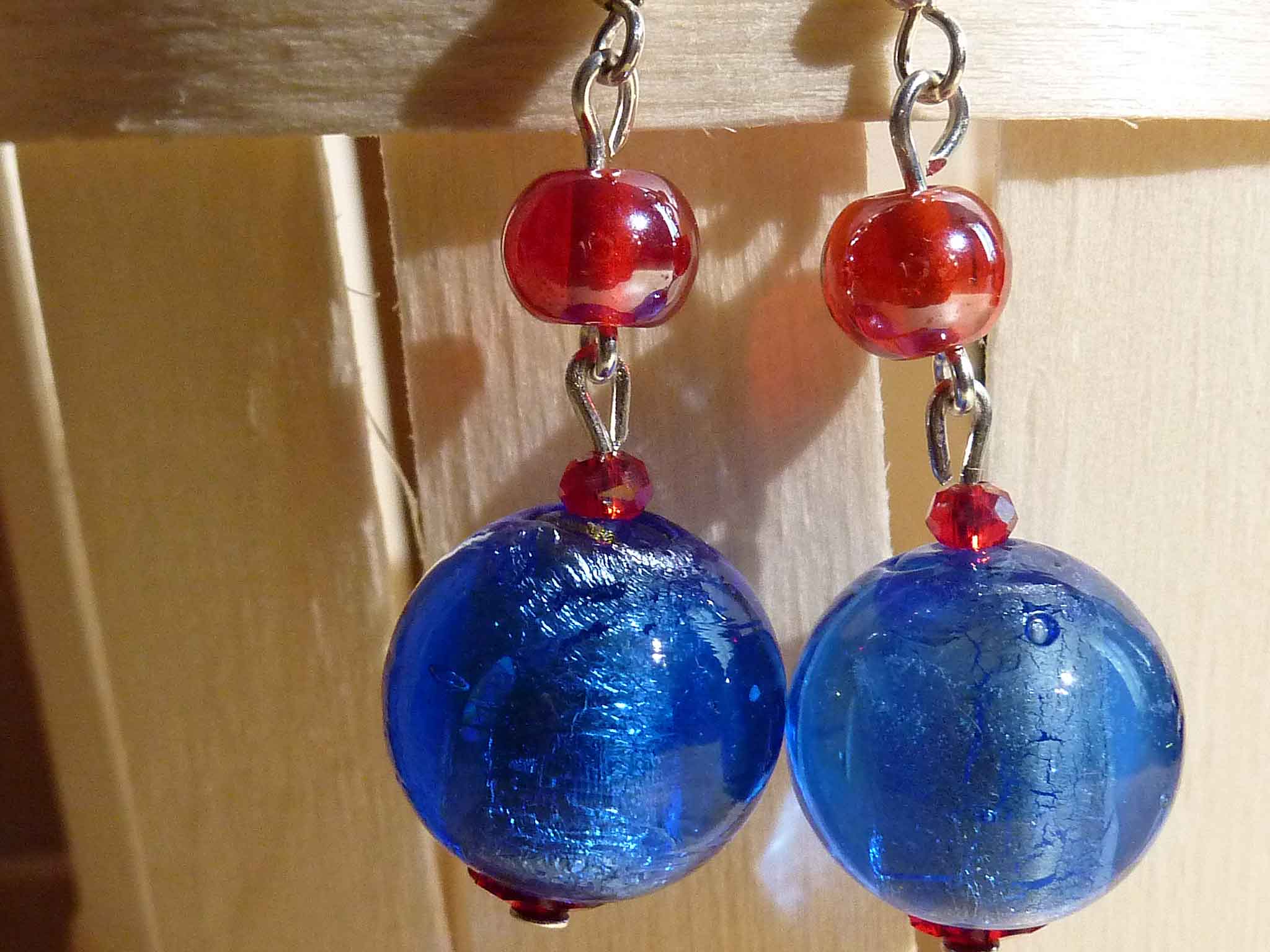 Description : Toute en rondeur avec sa grosse perle à feuille d'argent bleu et sa petite perle brillante rouge.
