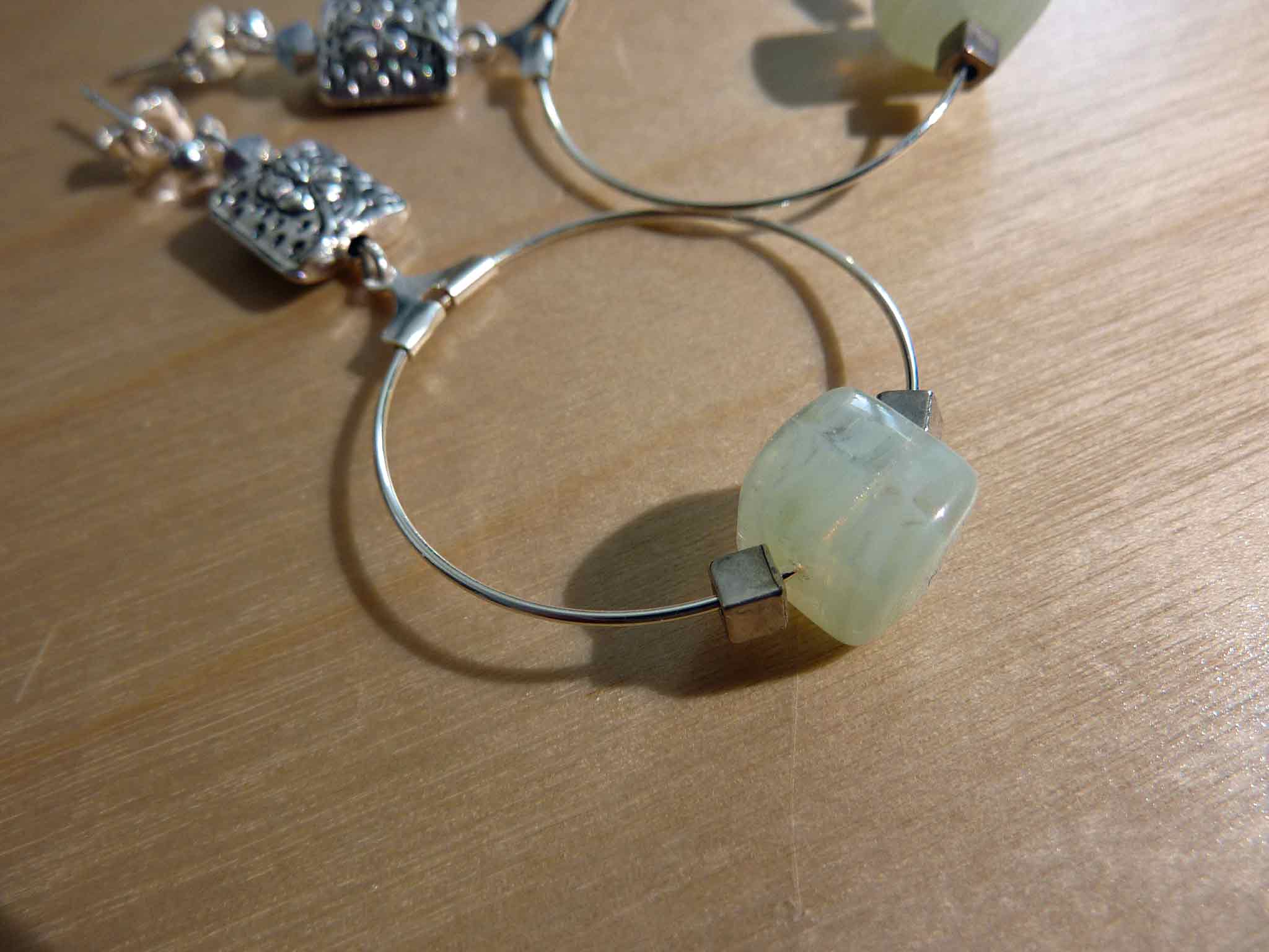 Description : De la légèreté pour cette paire argentée avec un cube de verre opale vert très pâle.