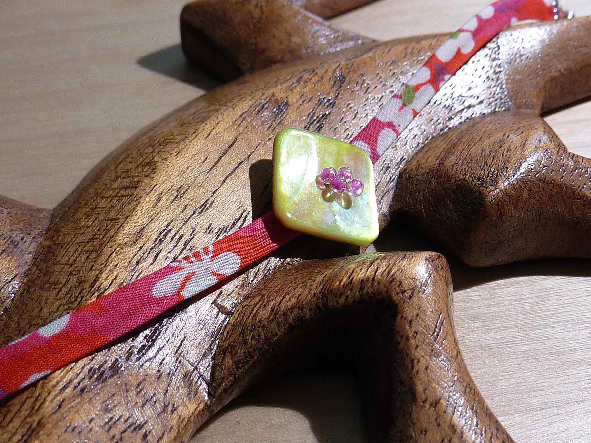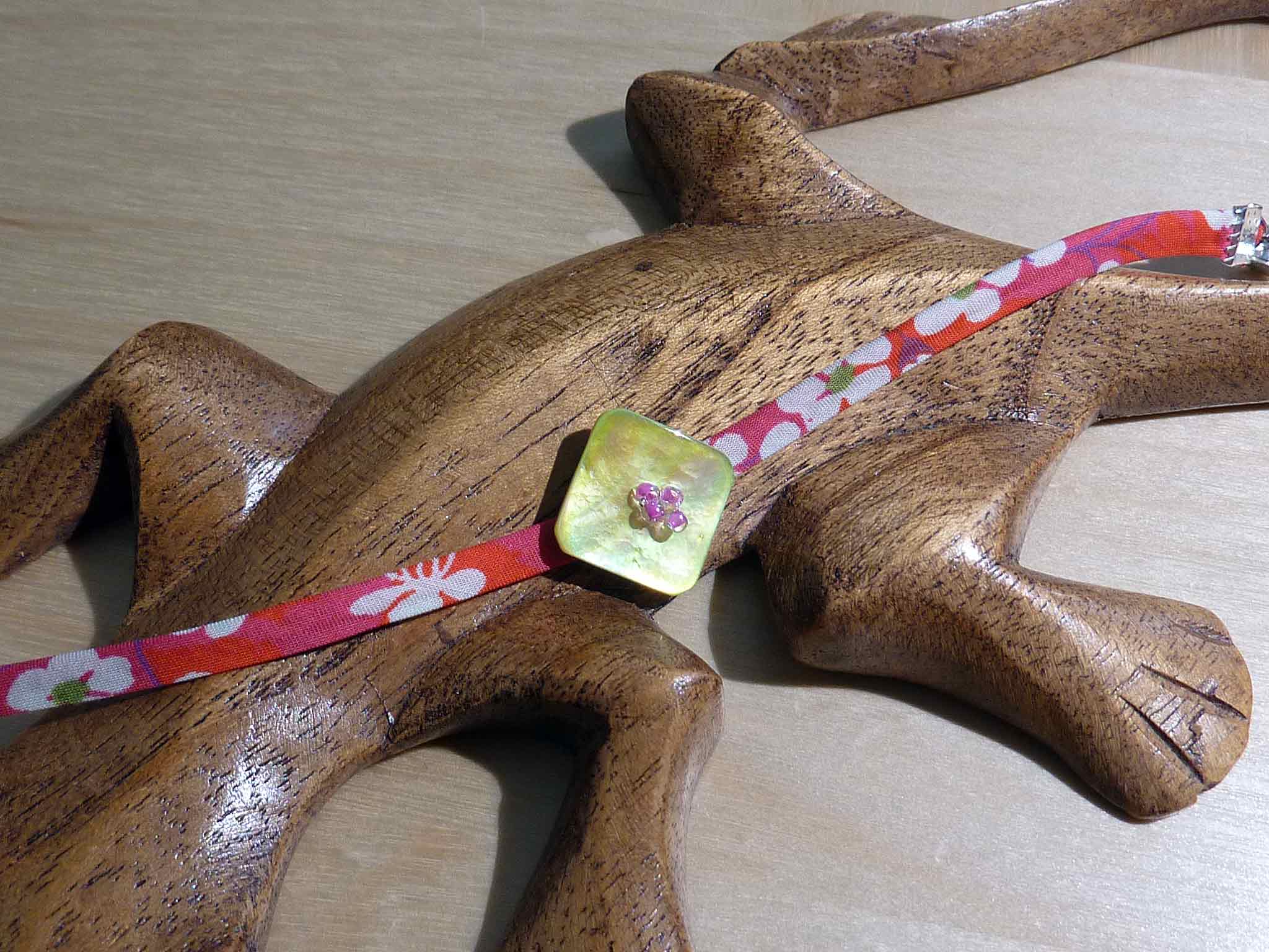 Description : Biais tout fin super vitaminé et un carré de nacre anis.