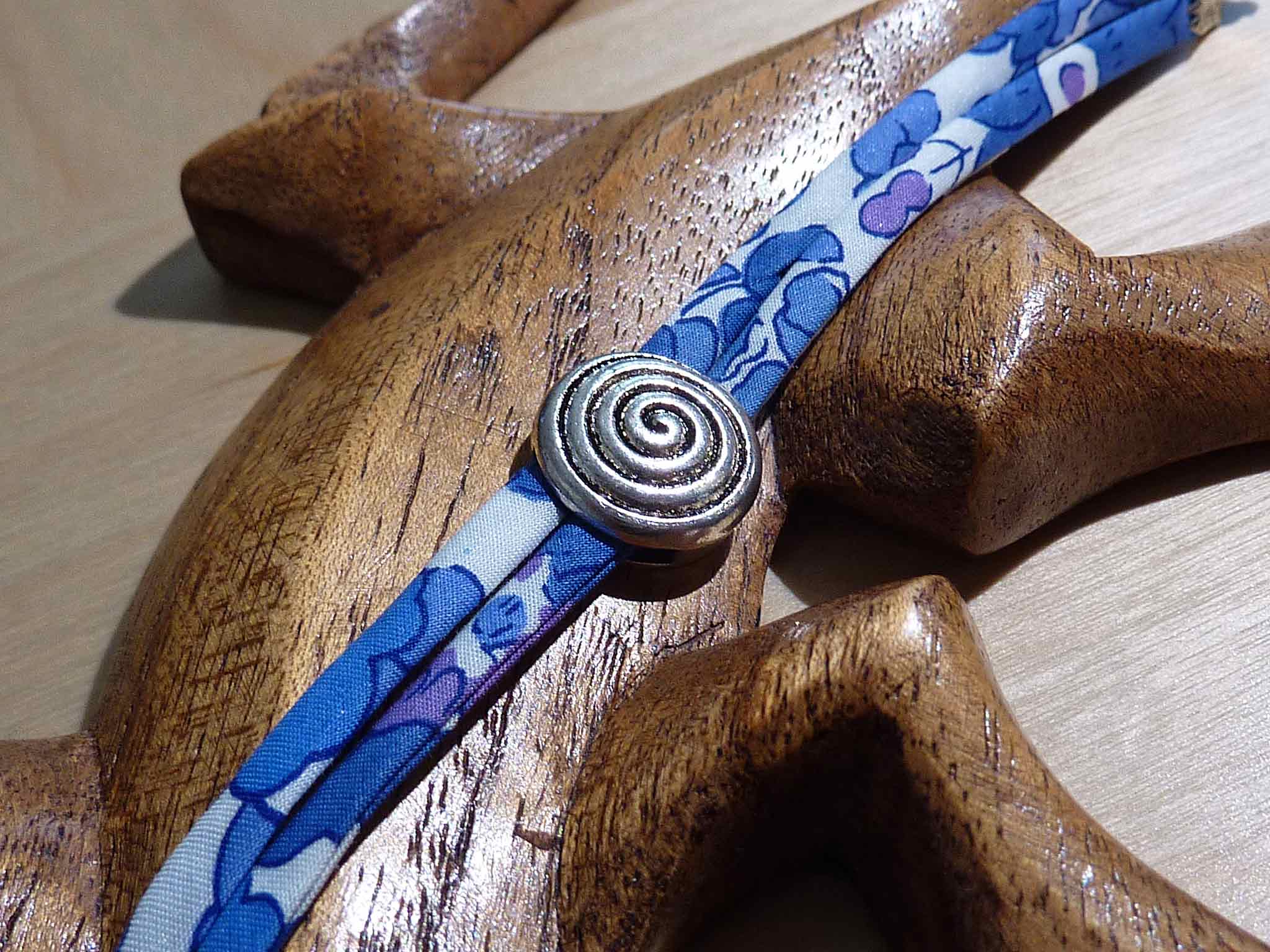Description : Fin biais bleu et blanc en double avec un palet argenté.