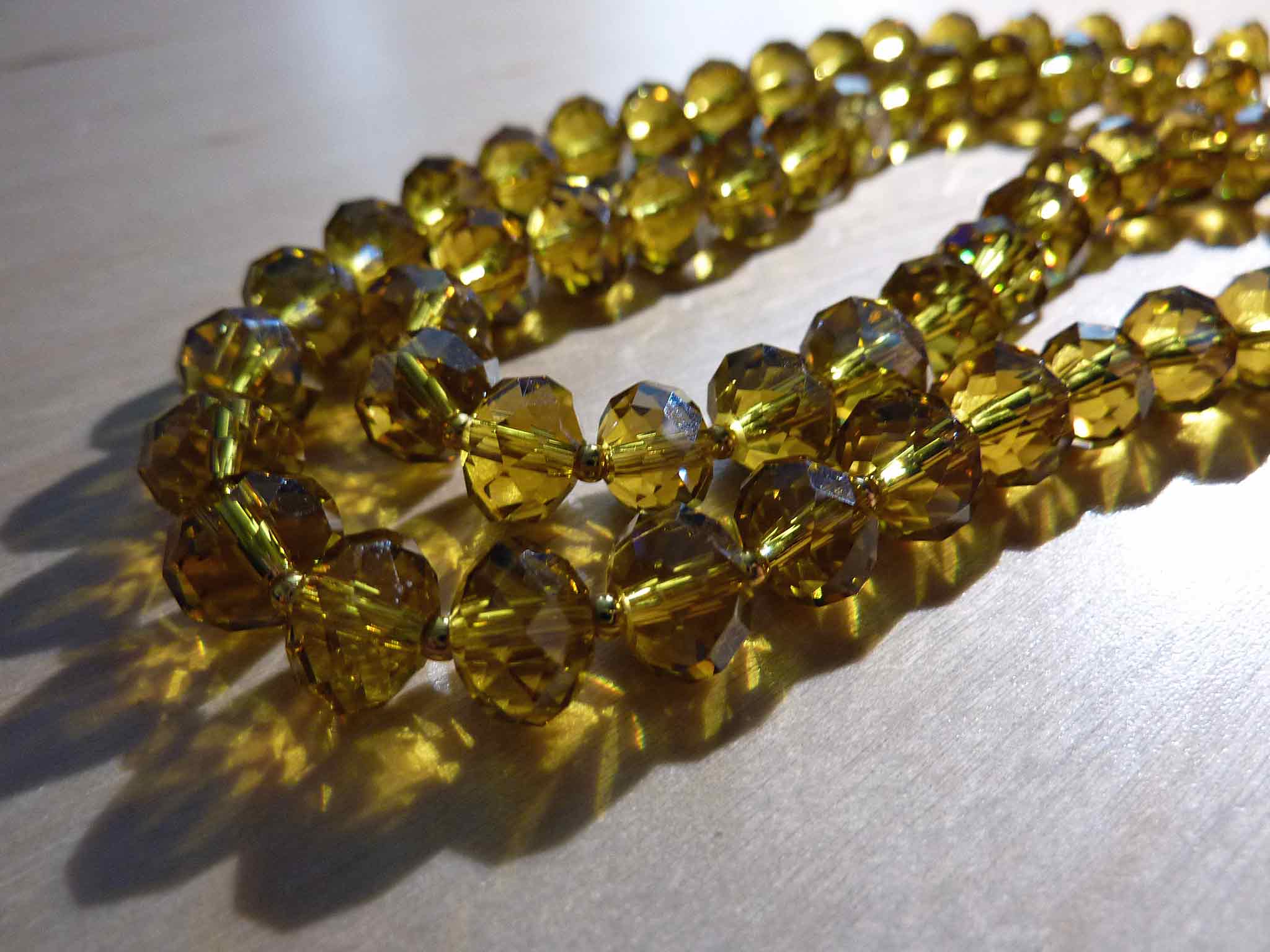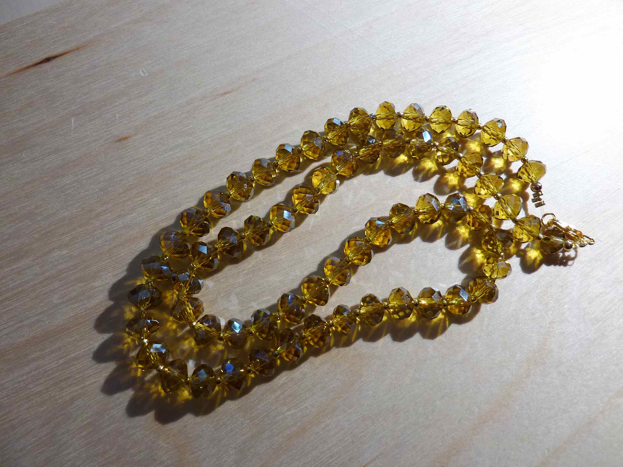 Description : Collier en perles facettées jaunes intercalées de toutes petites perles dorées.