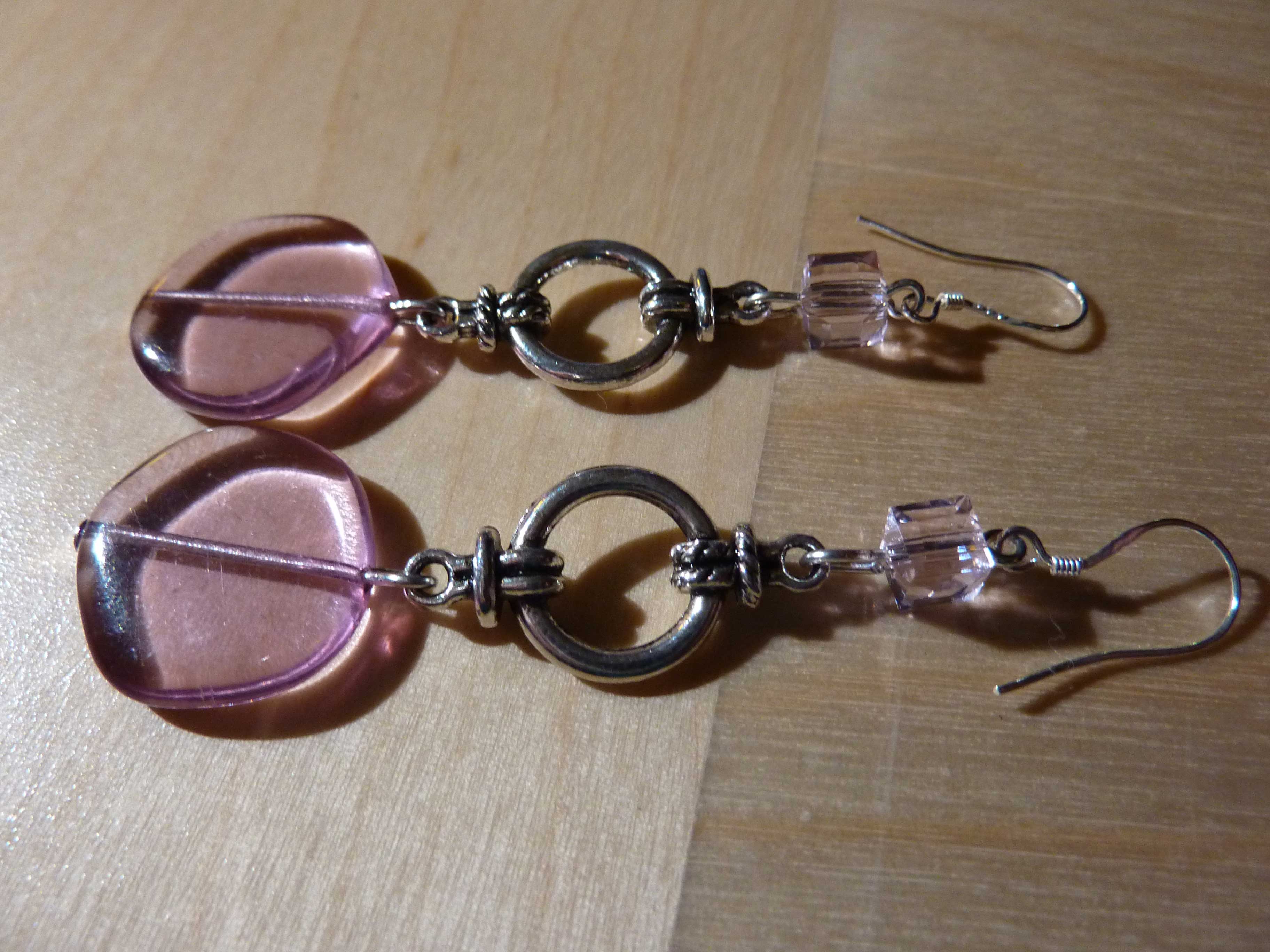 Description : Palet rose en verre et cube swarowski sur monture argent