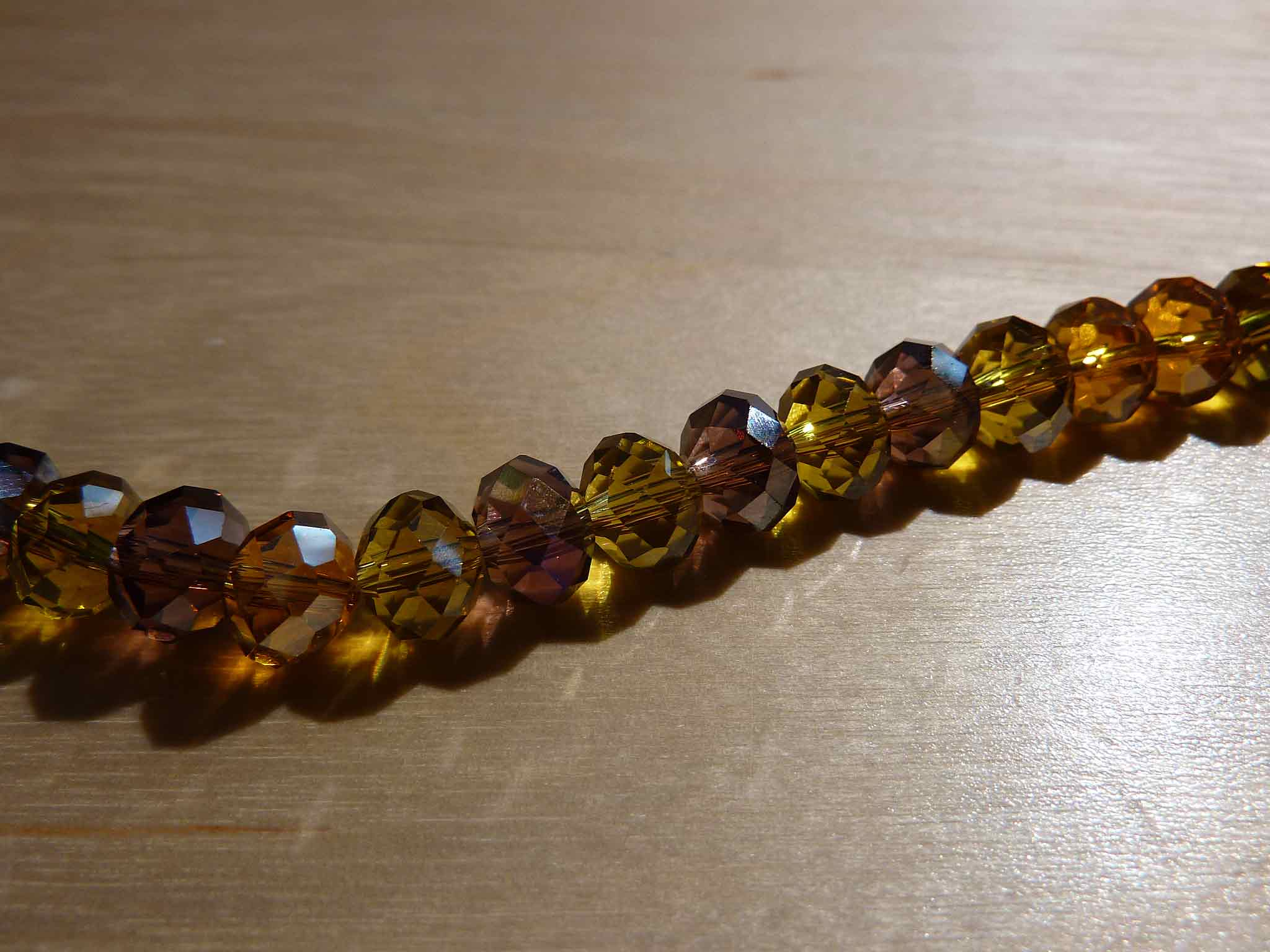 Description : Collier en perles facettées dont le mélange de couleurs donne des effets mordorés.