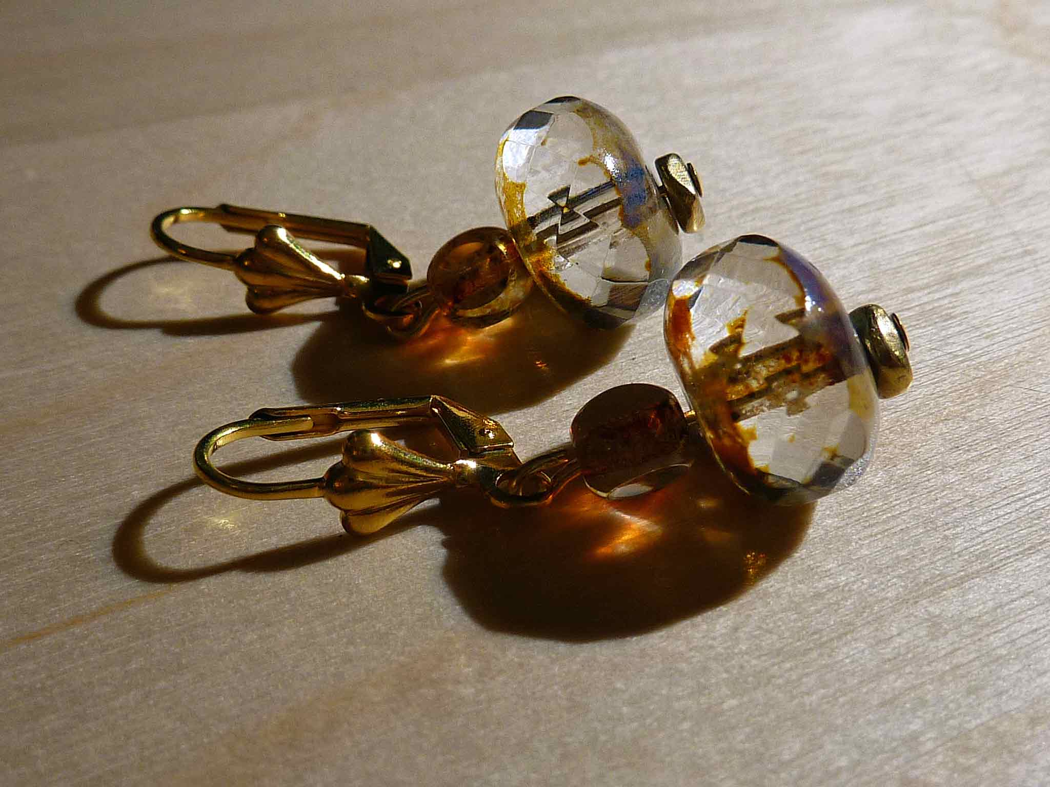 Description : Toute petite mais très chic en perle en verre facettée sur une monture dorée.