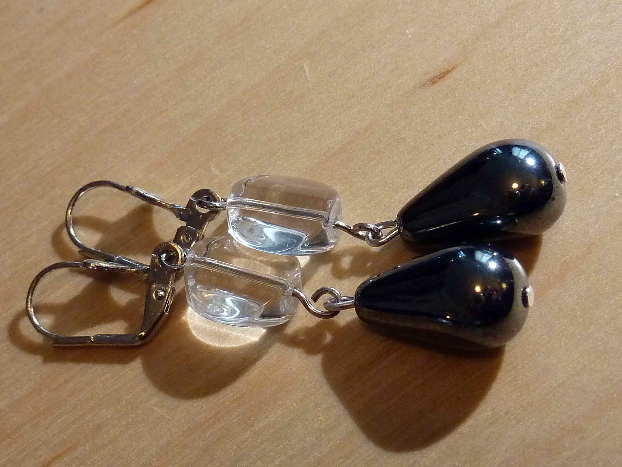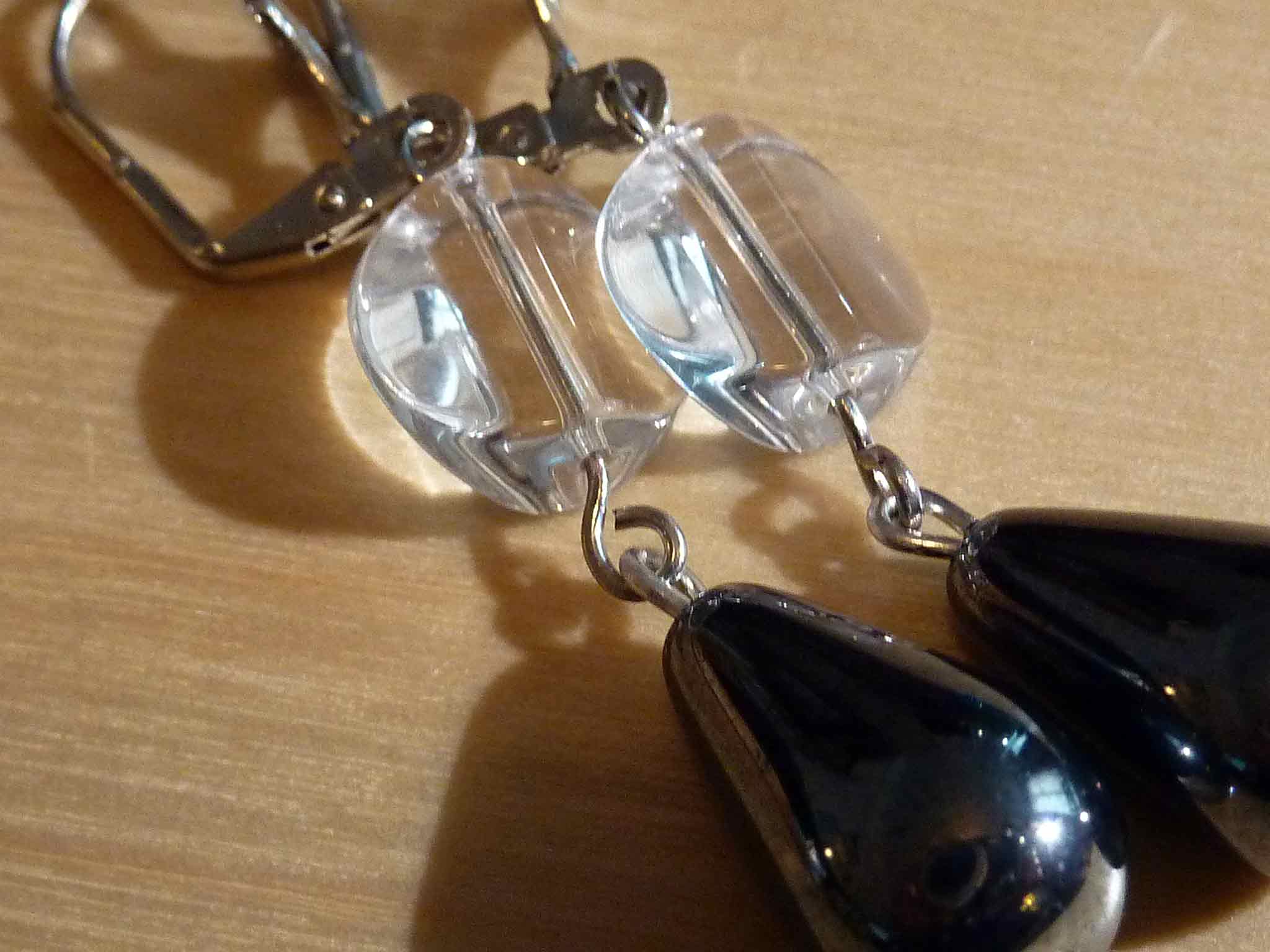 Description : Jolie dormeuse avec une goutte anthracite et un petit palet de verre