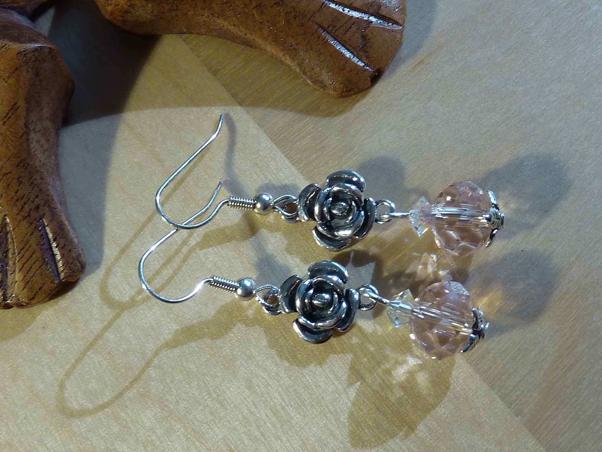 Description : Boucle romantique avec une jolie fleur argentée et un beau cristal de bohème rosé