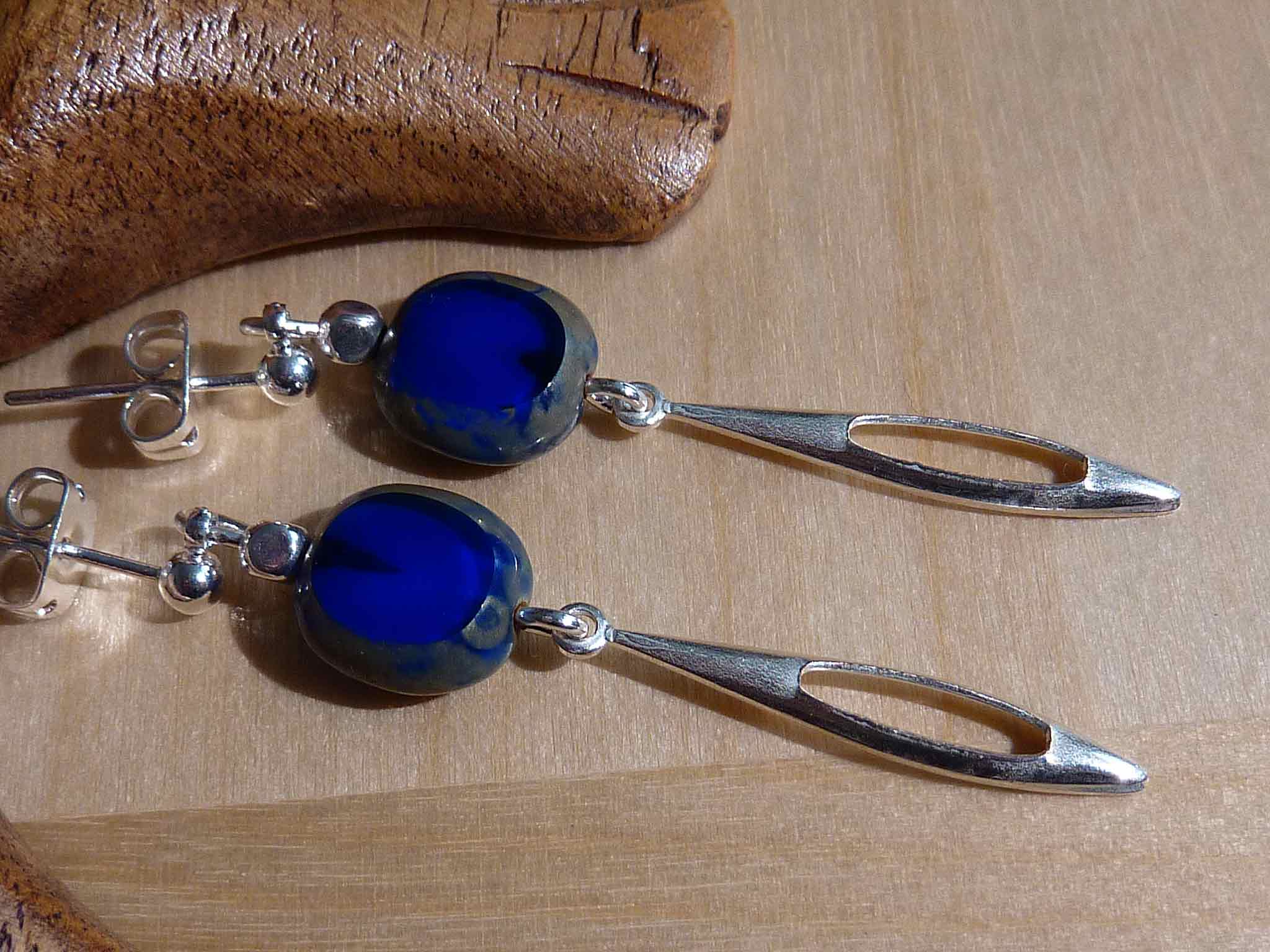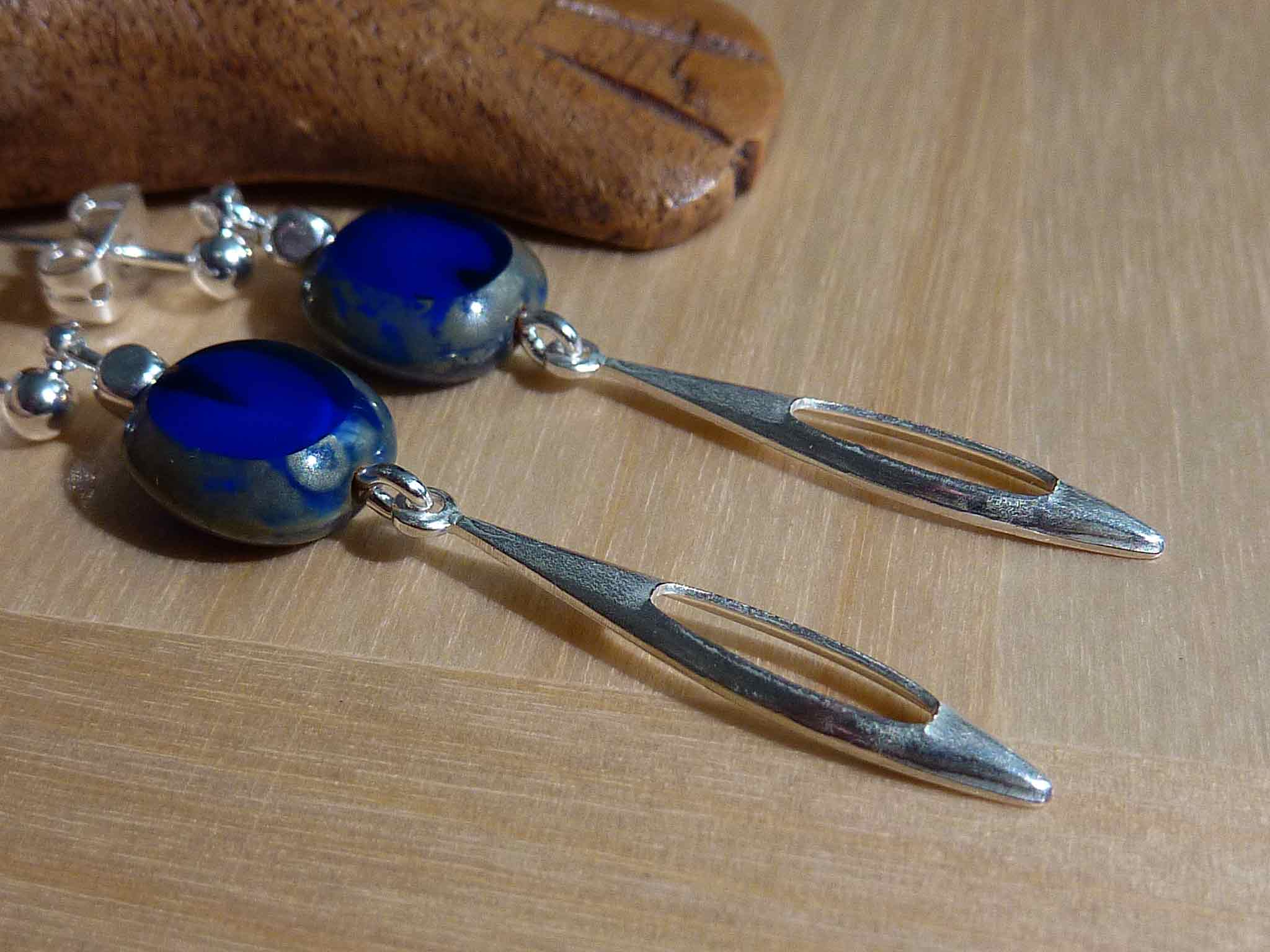 Description : Simple mais chic cette boucle fine argentée avec son palet en verre de bohème d'un bleu profond