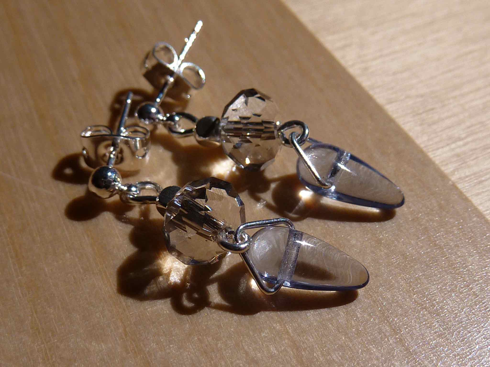 Description : Toutes petites, toutes en transparence, toutes brillantes en verre et cristal de bohème sur une monture argentée.