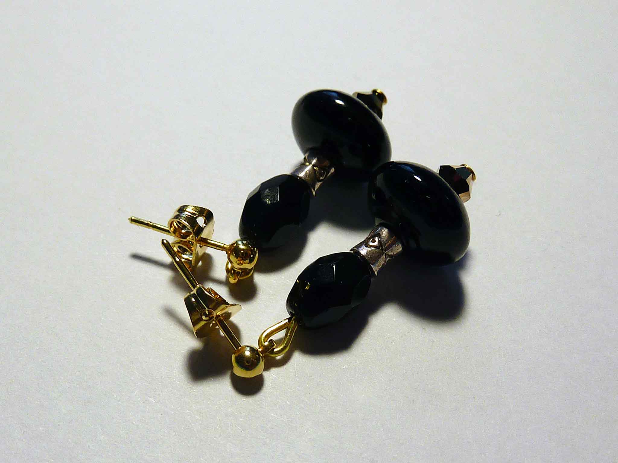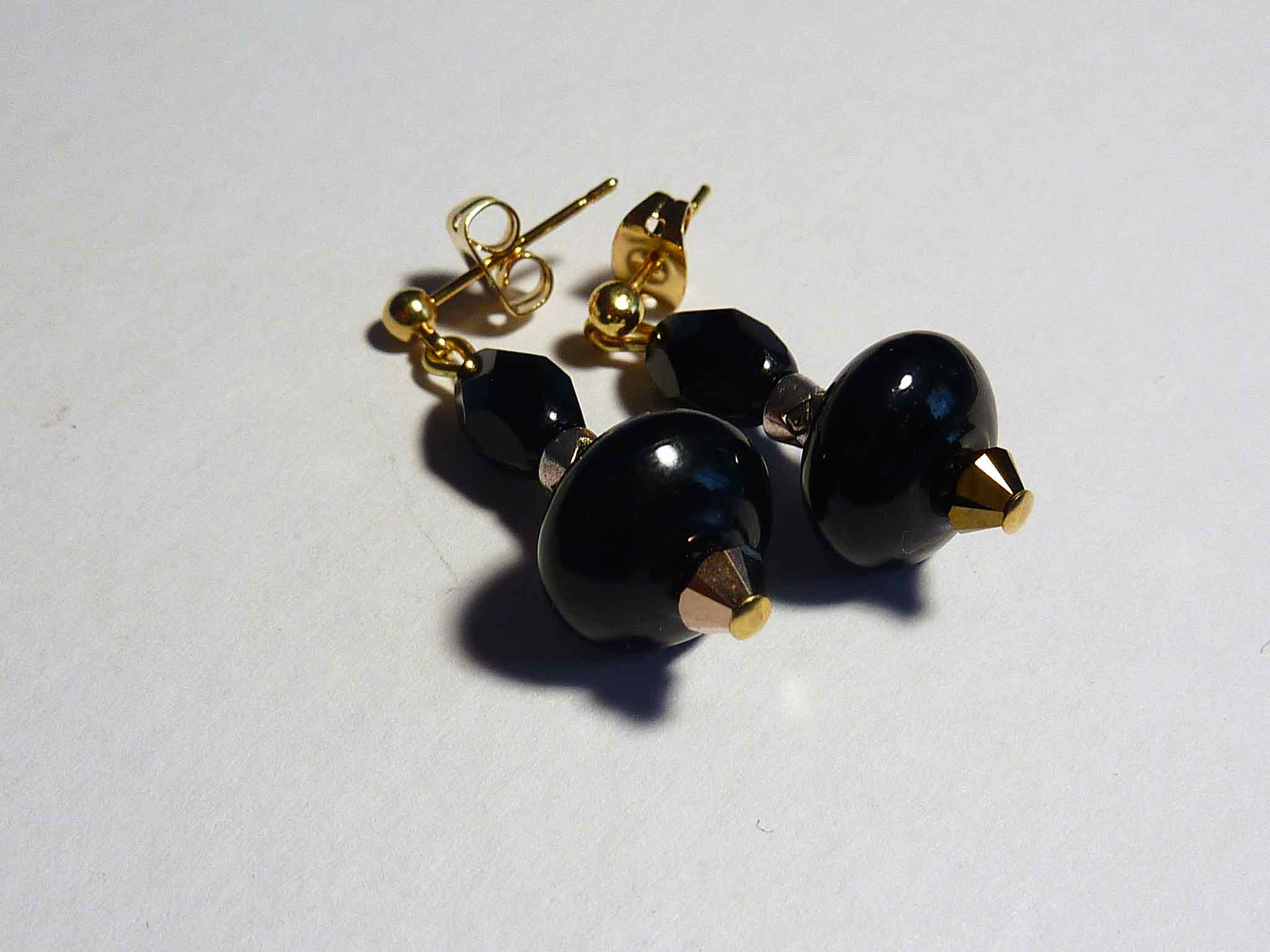 Description : Toute en noir et doré, très chic ! cette jolie boucle en perle de verre de bohème et swarowski