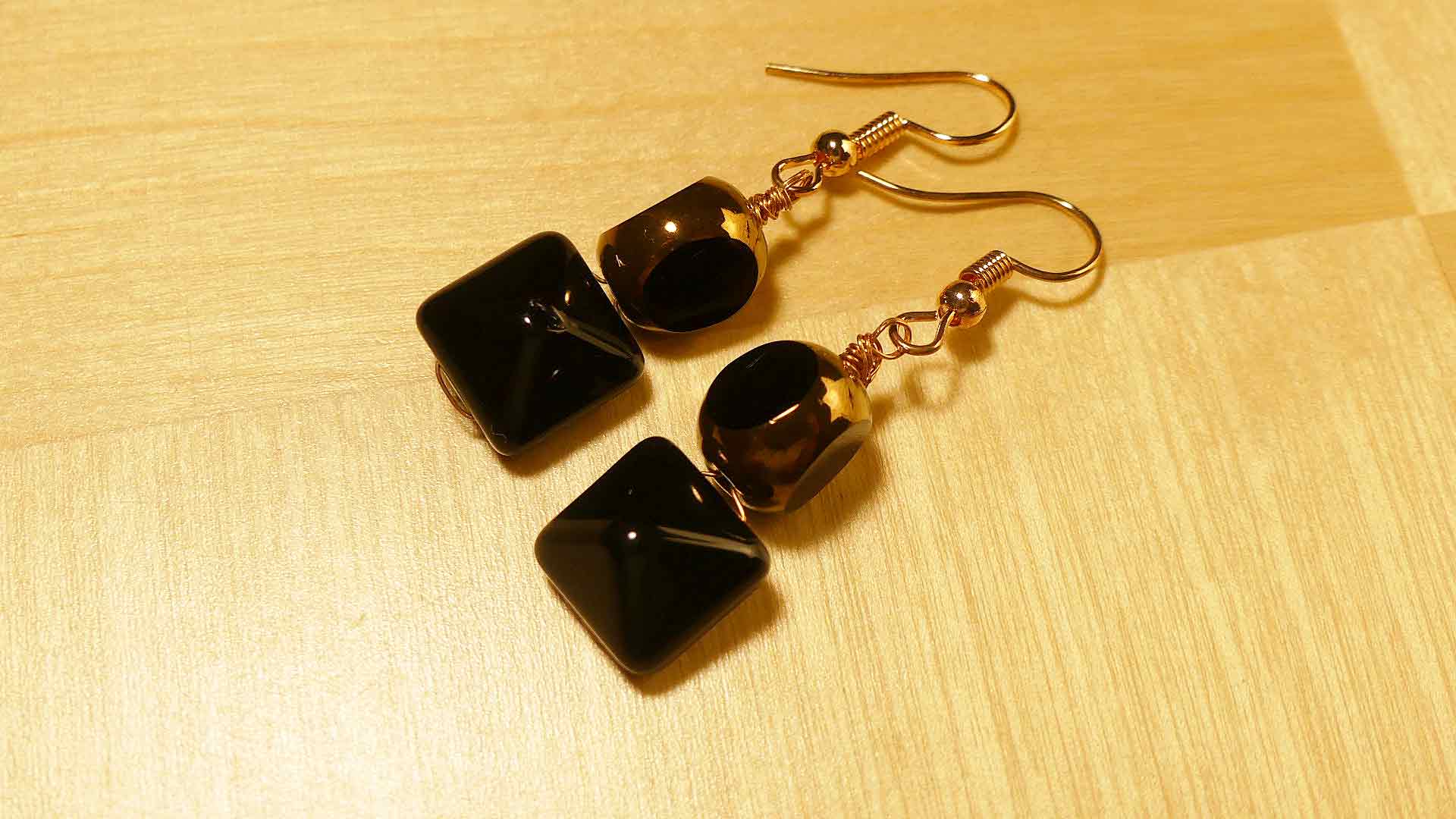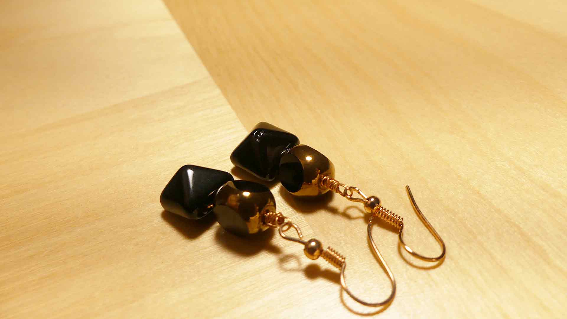 Description : Petite boucle aux multiples formes en cristal de bohème noir sur une monture dorée rose