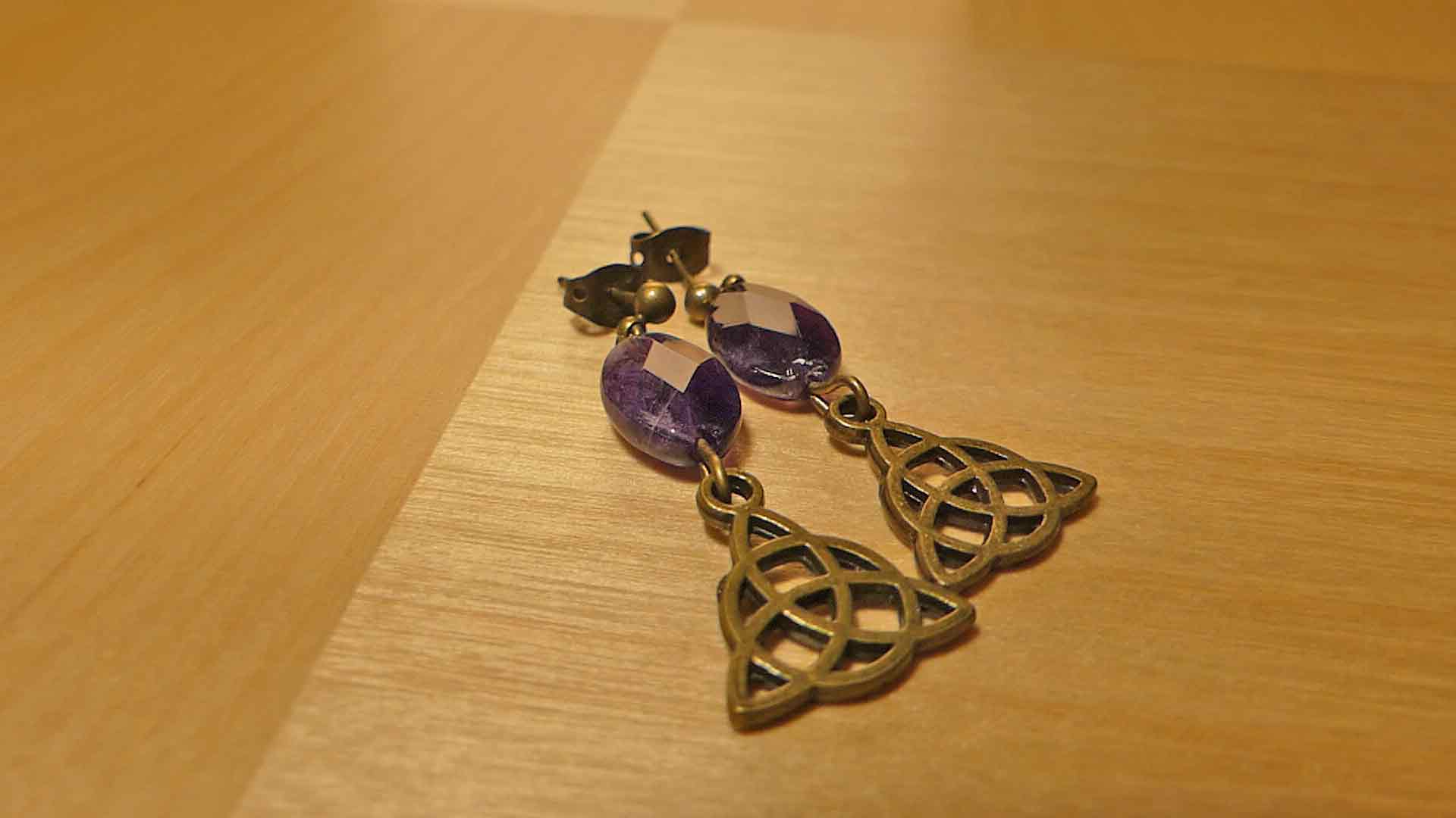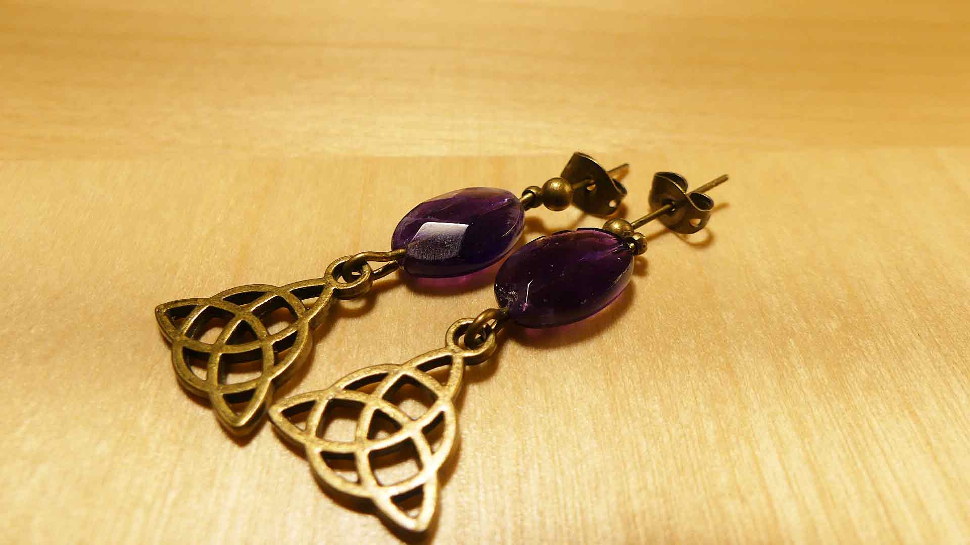 Description : un petit côté vintage et un zeste celtique, jolie boucle couleur bronze agrémentée d'une améthyste