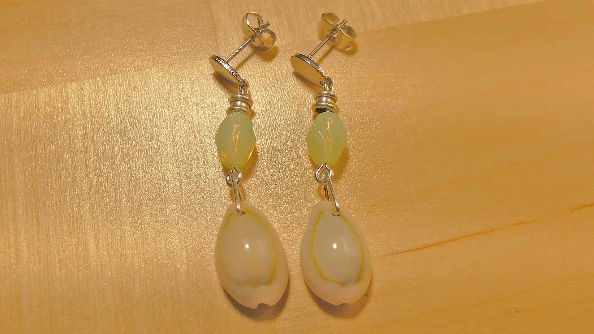 Description : C'est la mode pour l'été !!! boucle avec un petit coquillage et un petit grain de riz en cristal swarowski