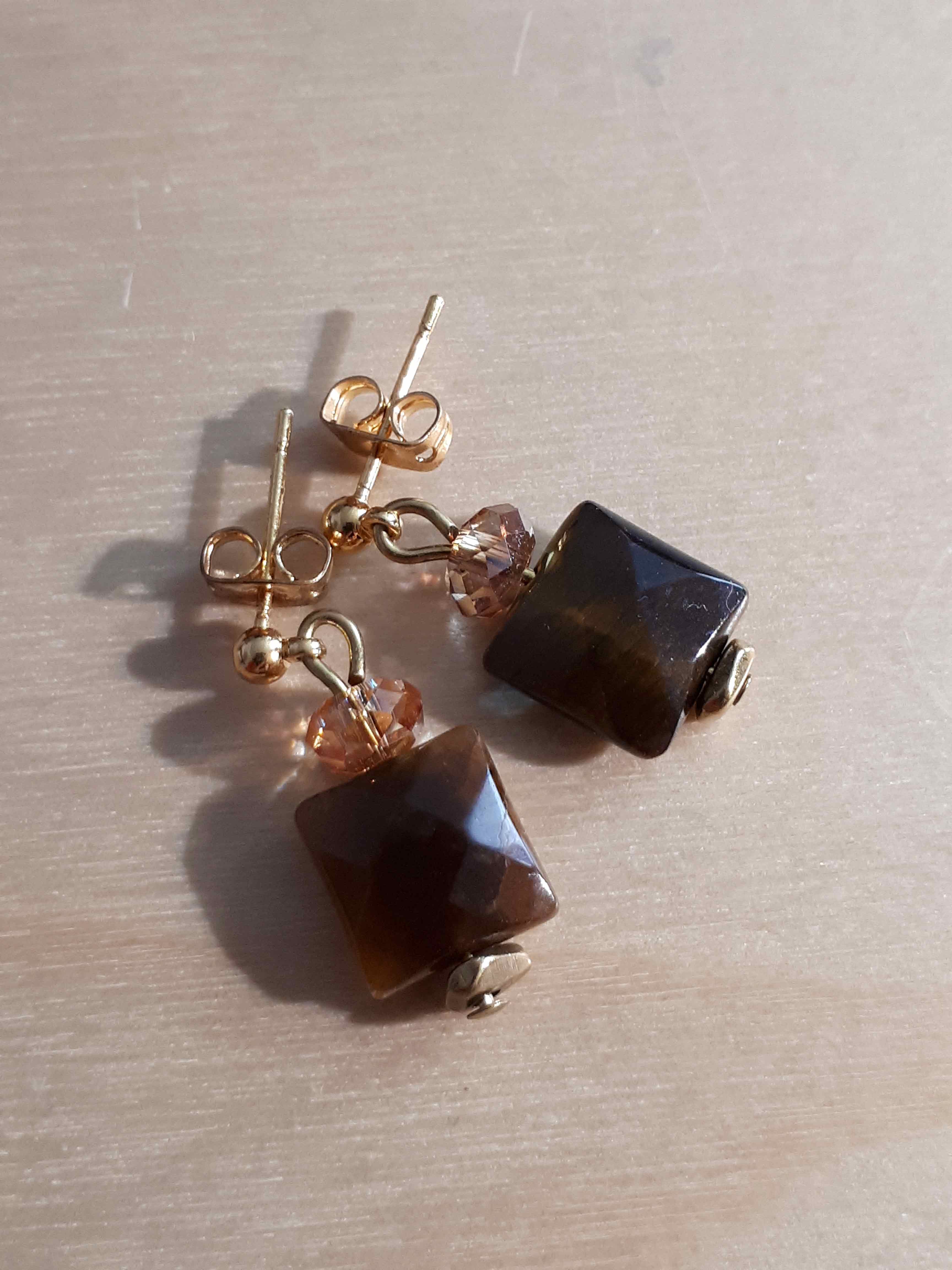 Description : Toute petite boucle avec un joli palet en oeil de tigre et un petit cristal swarowki