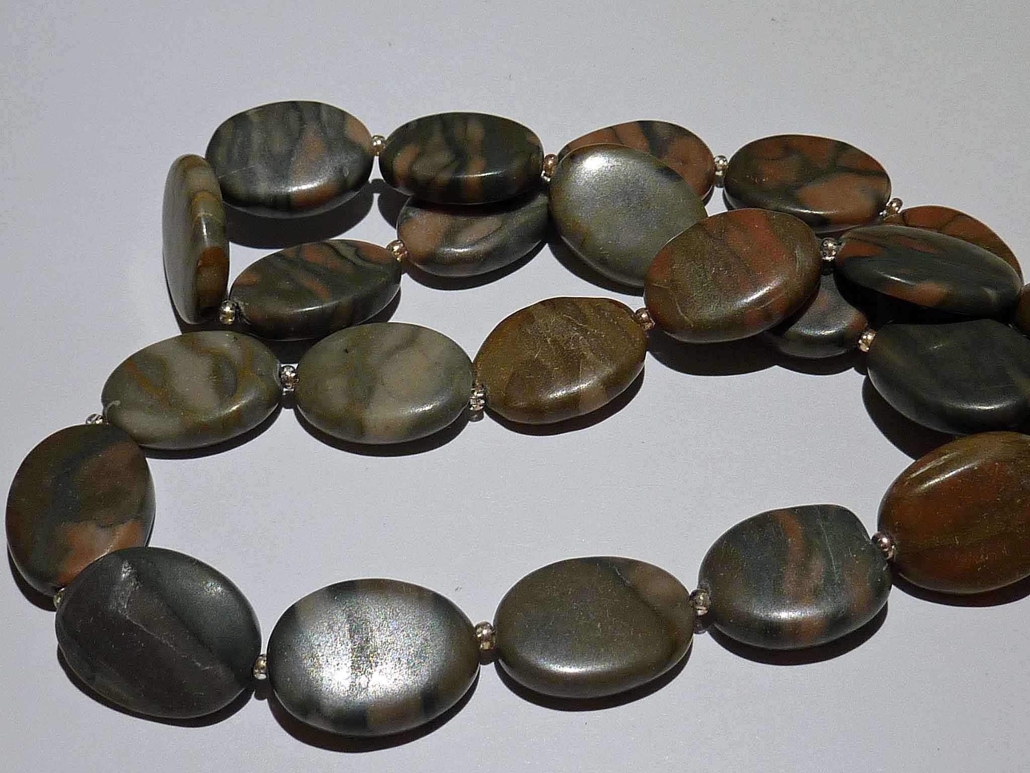 Description : Palets ovales en jaspe zébré intercalés de perles de rocaille