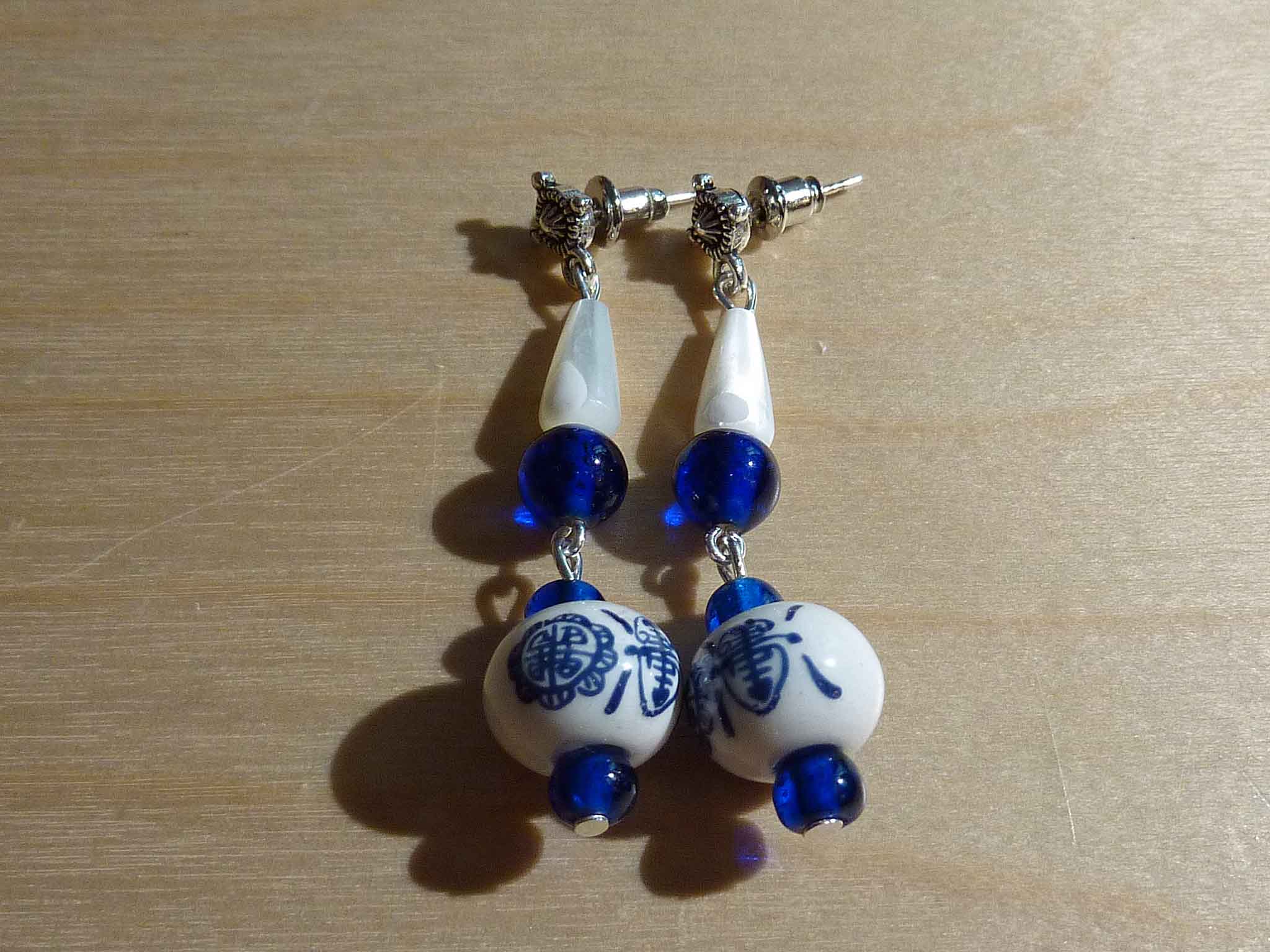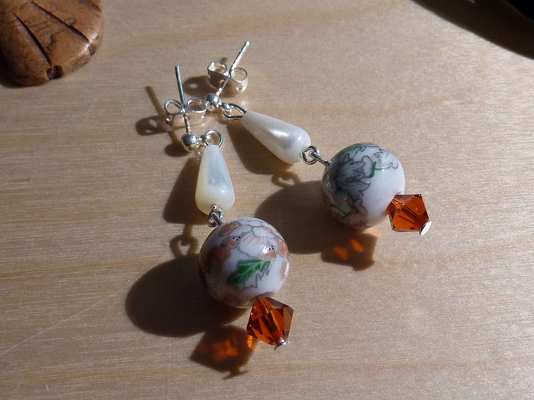 Jolie boucle en nacre, perle en porcelaine...