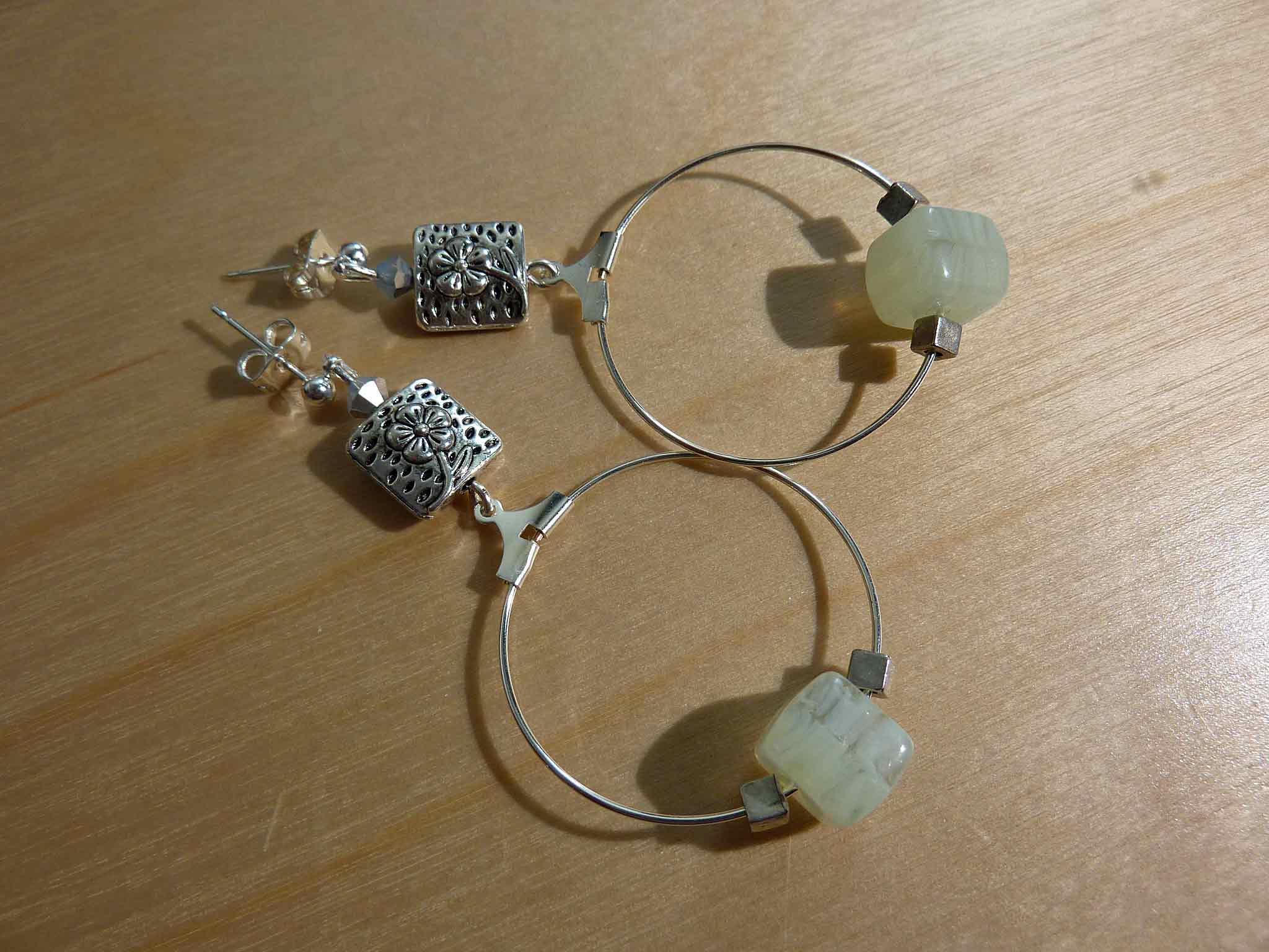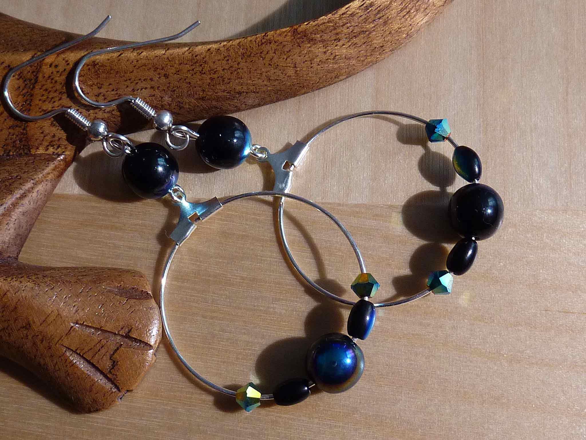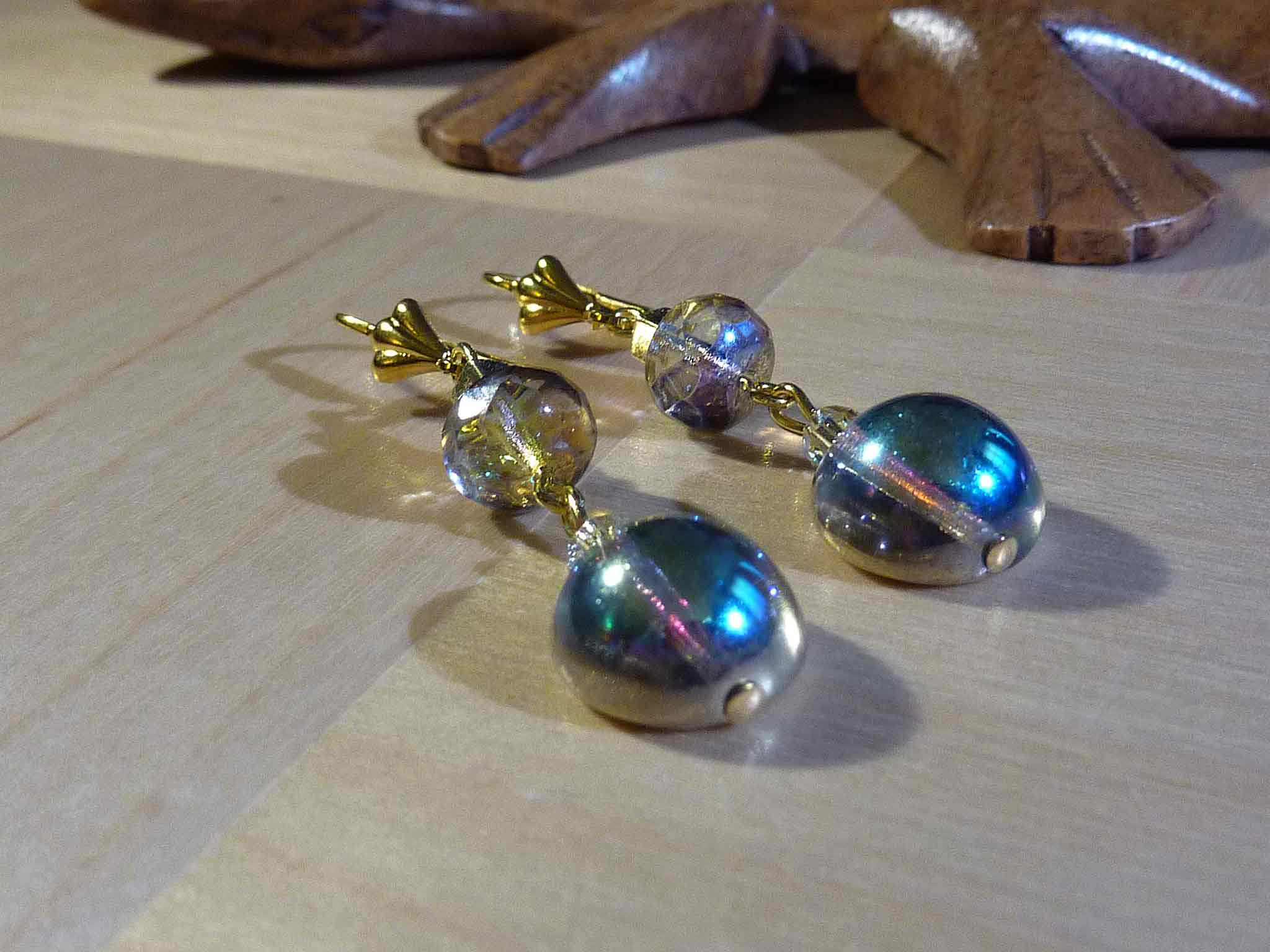 Jolie boucle en nacre, perle de verre...