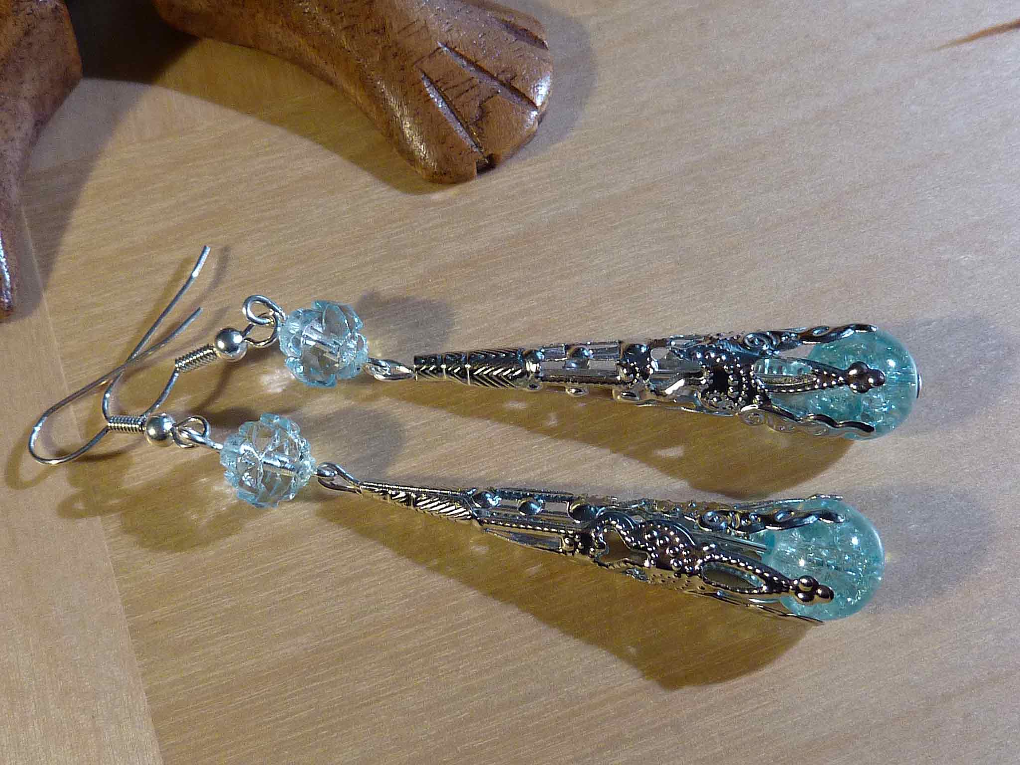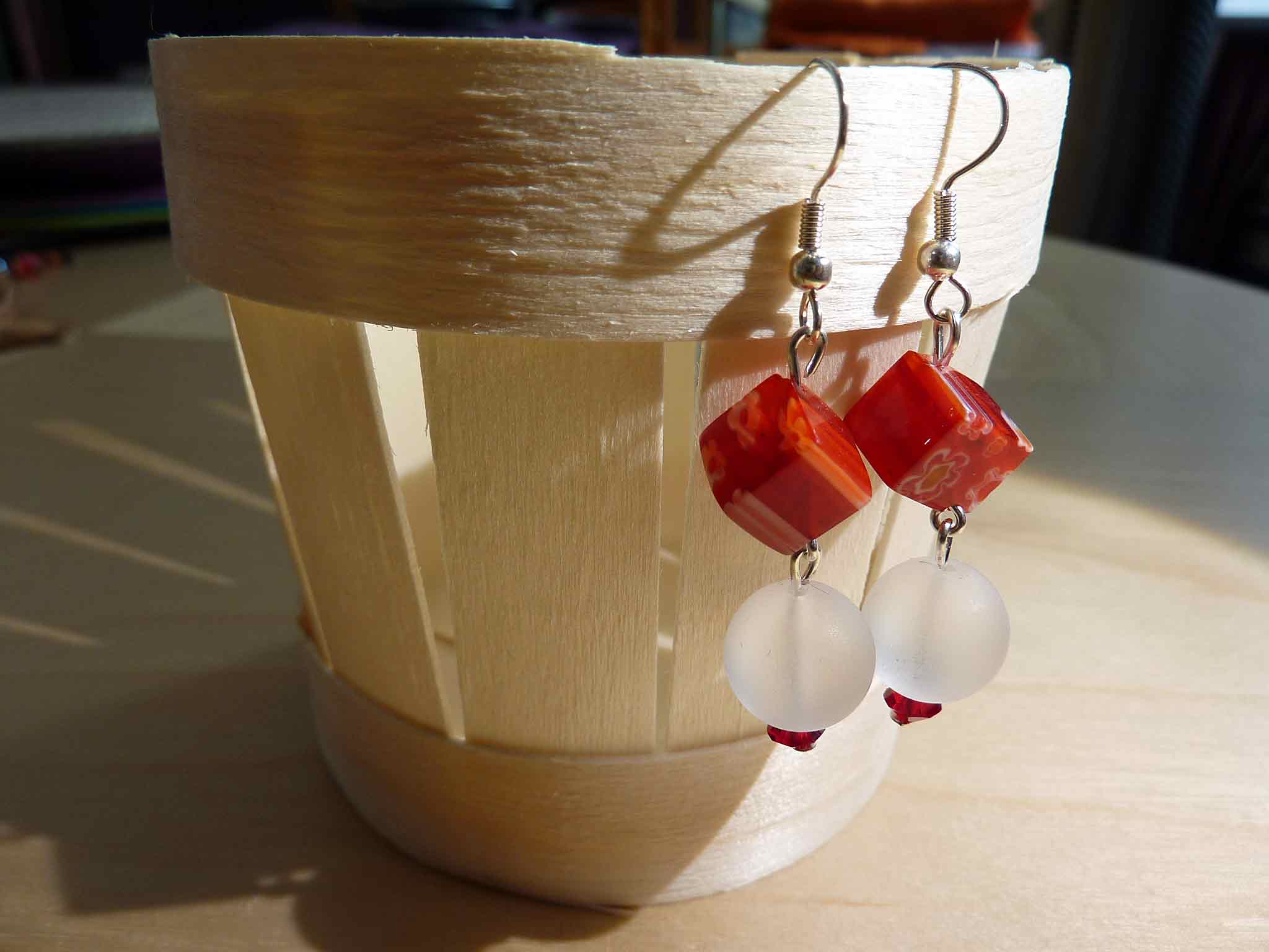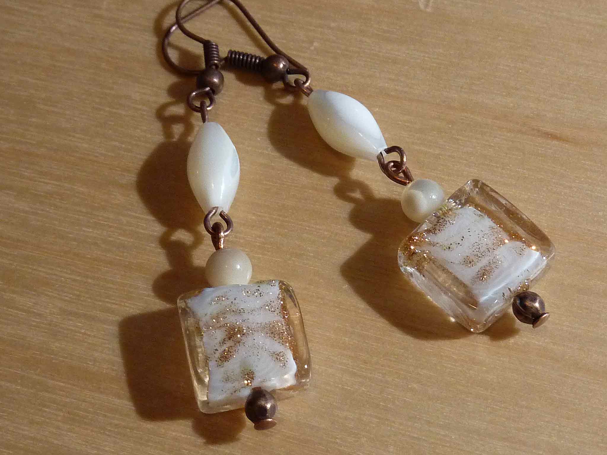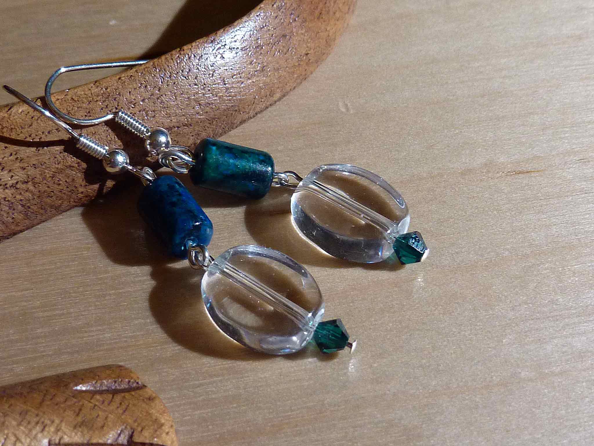 Jolie boucle en nacre, perle de verre...