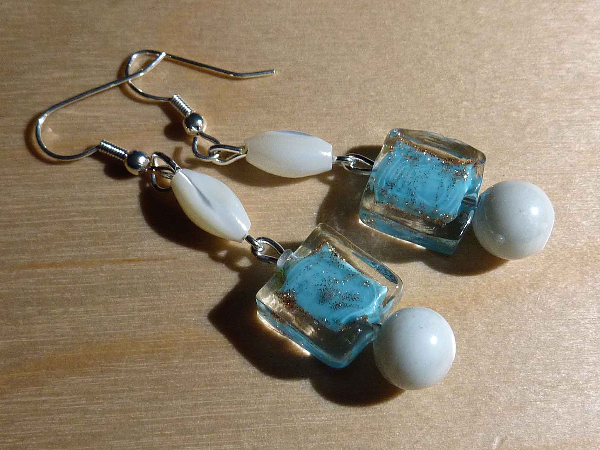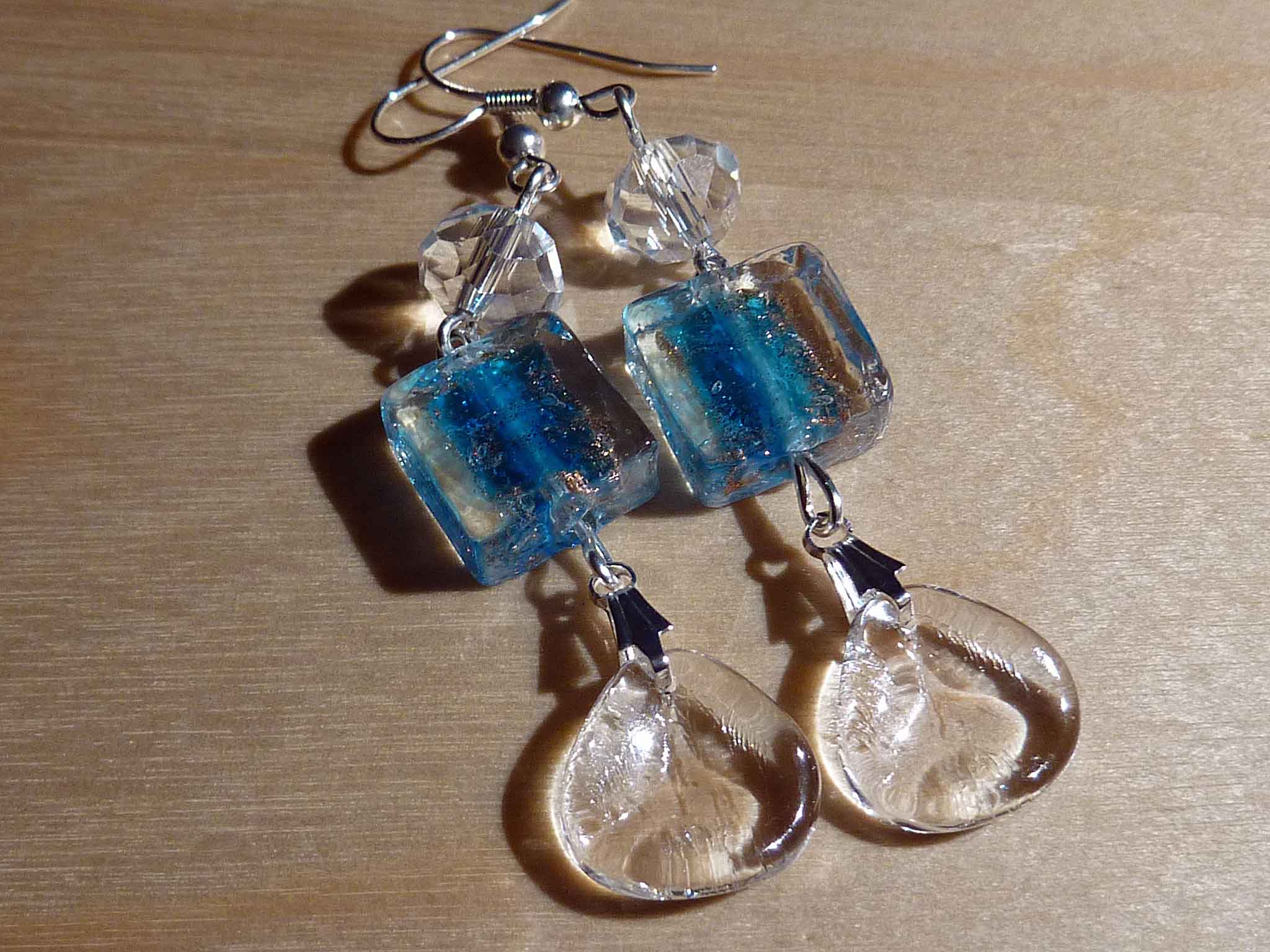 Une perle carrée de style murano bleue...