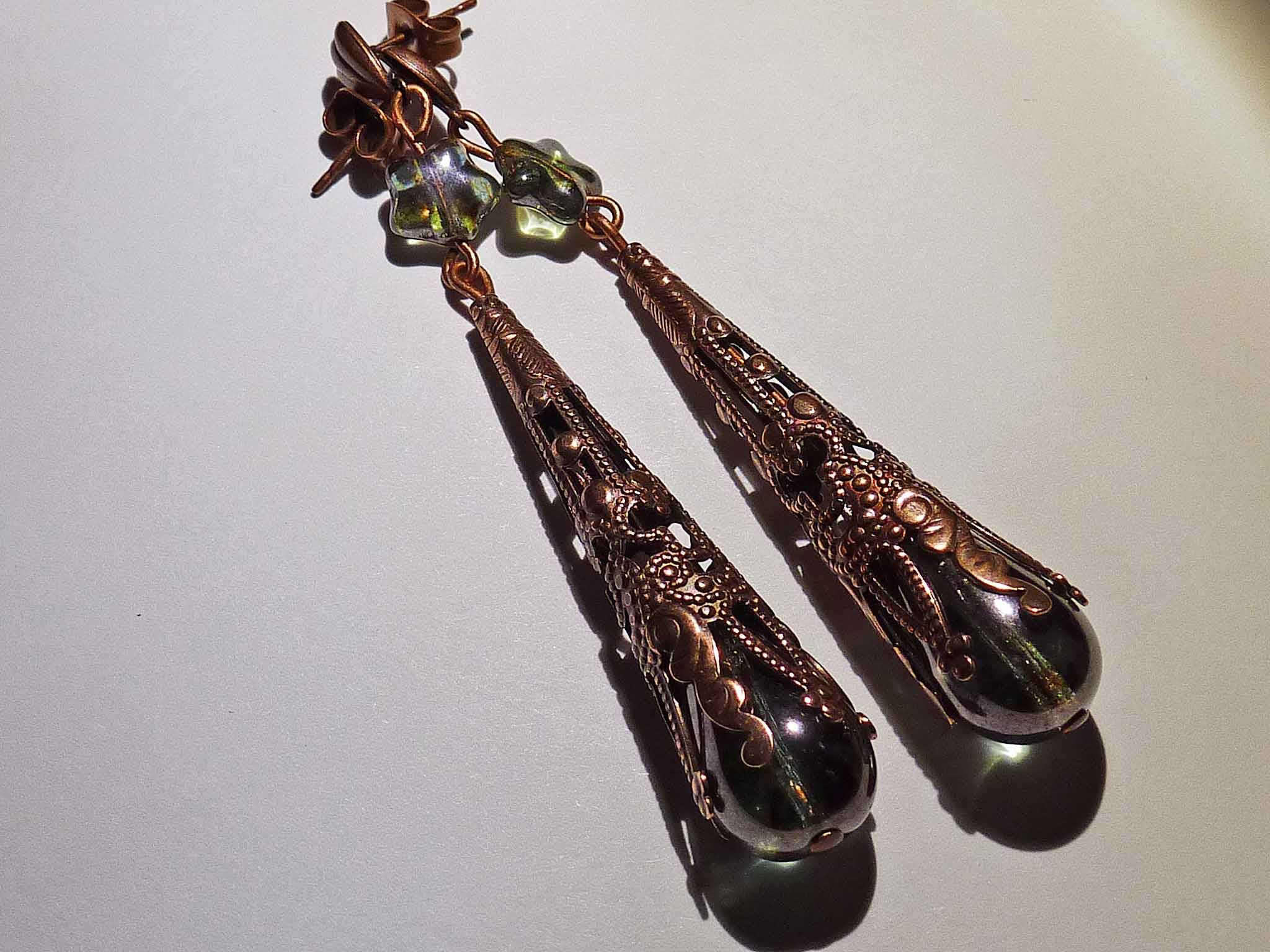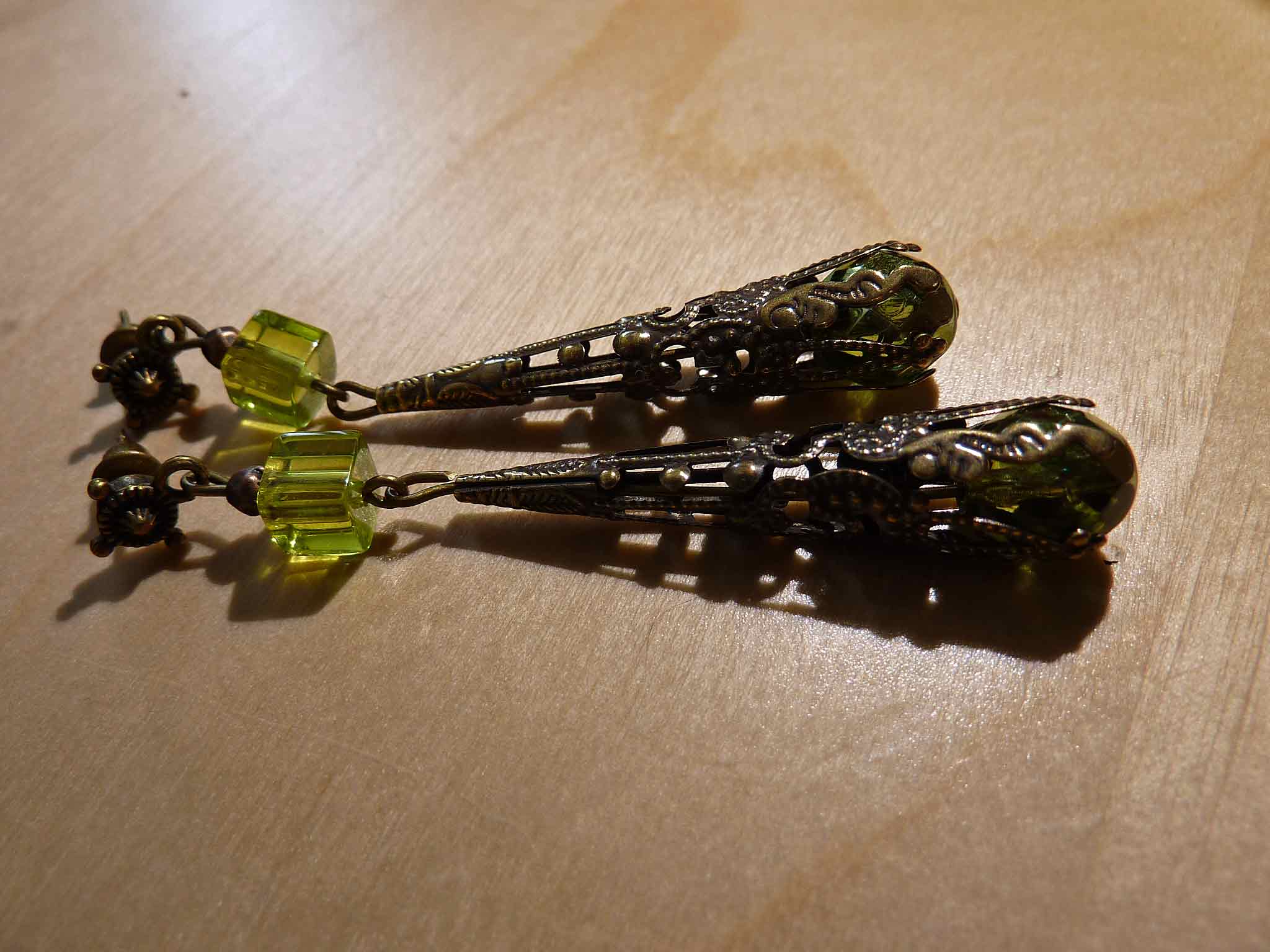 Un long cône bronze sur une perle verte...