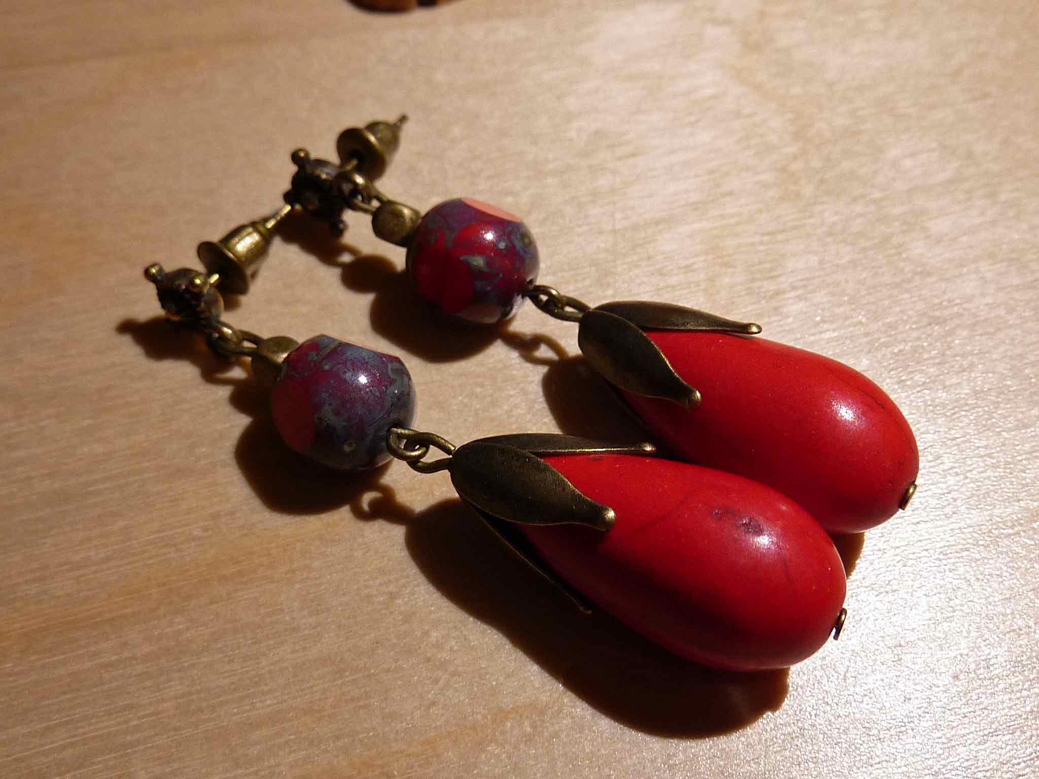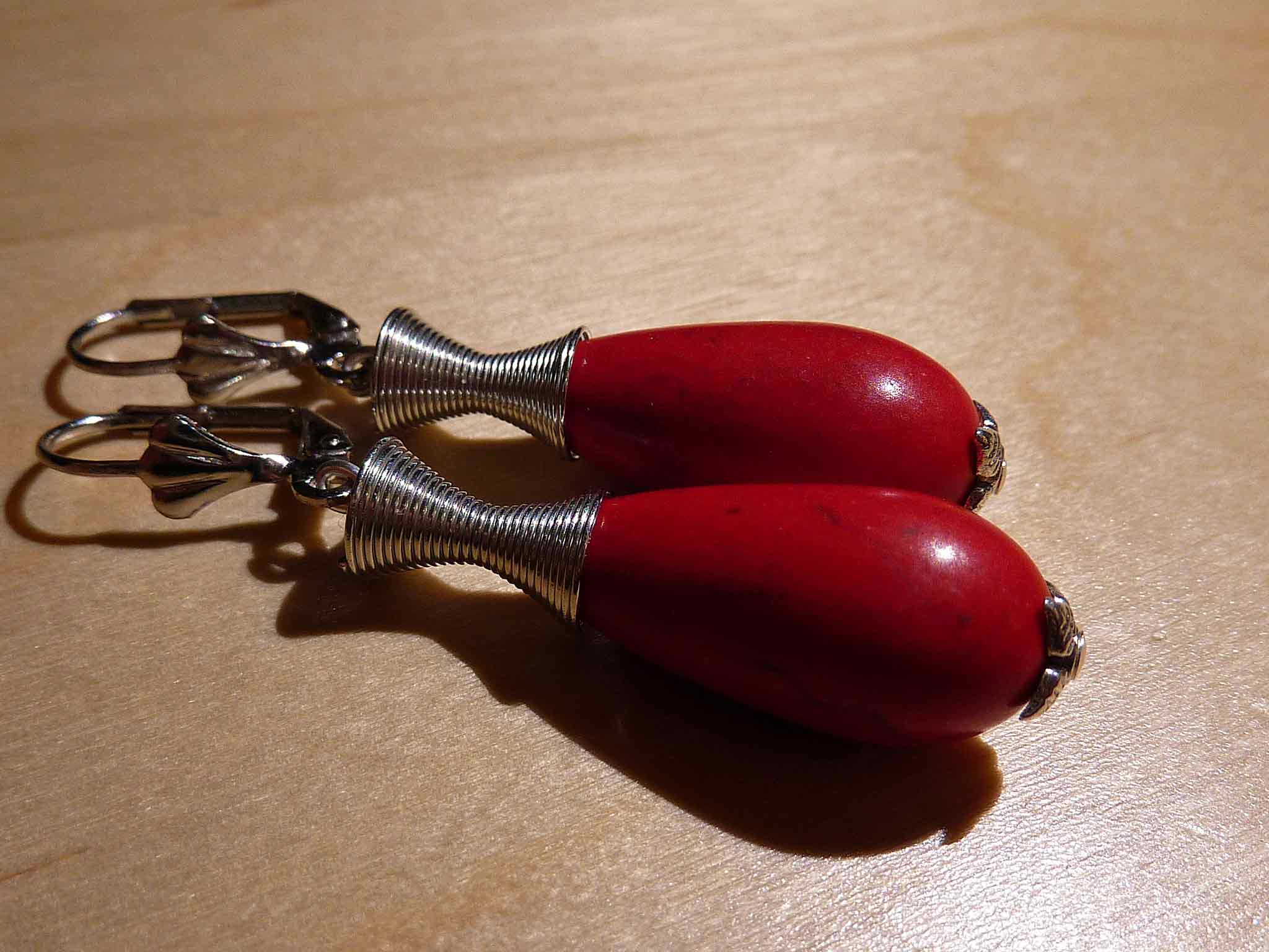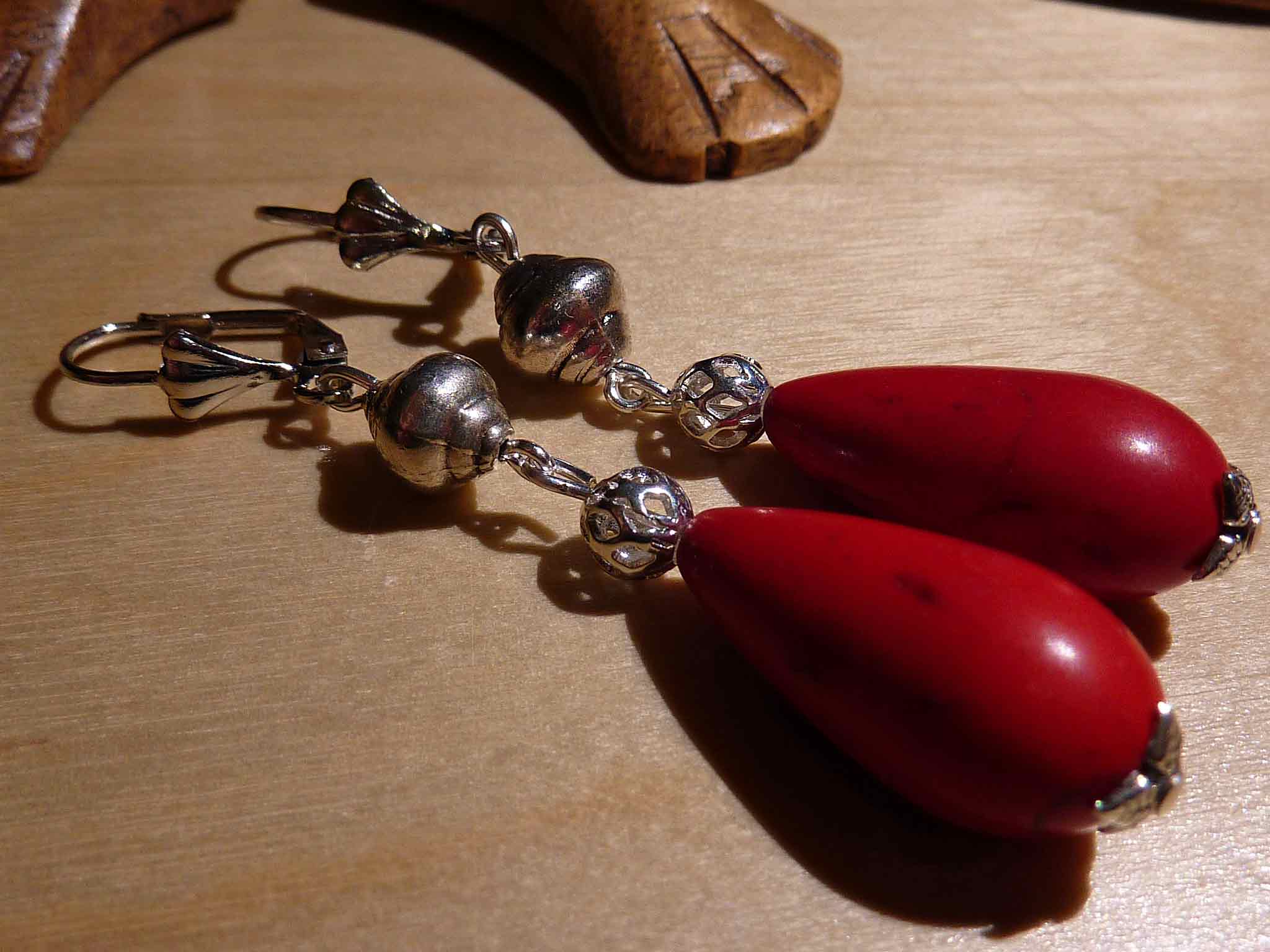 Longue goutte d'howlite rouge avec des...